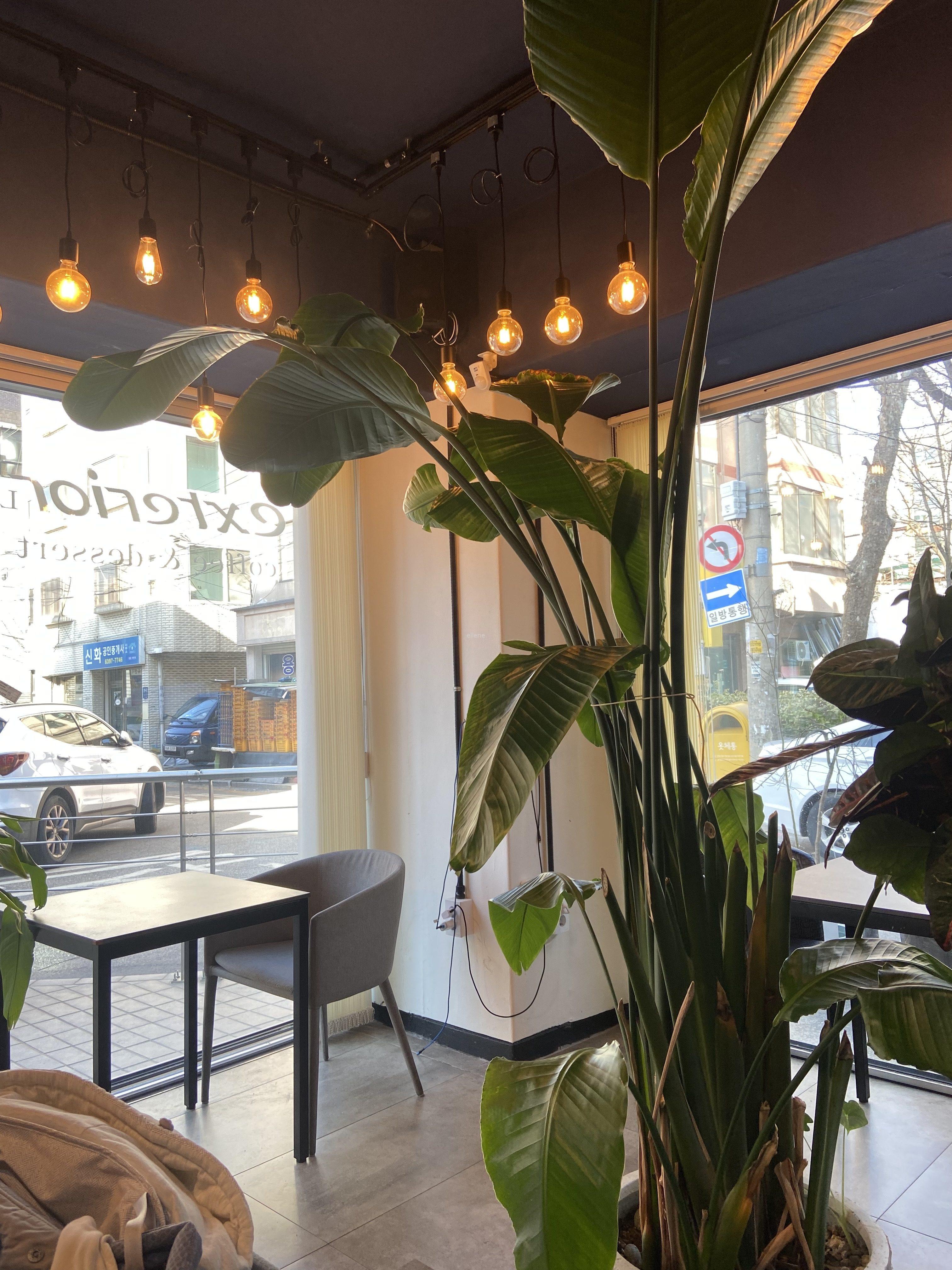 넓은 공간에 테이블도 넓직하게 배치되어있고 중간 중간 화초도 있다. 그래서 공간이 더 탁 트여 보인다.