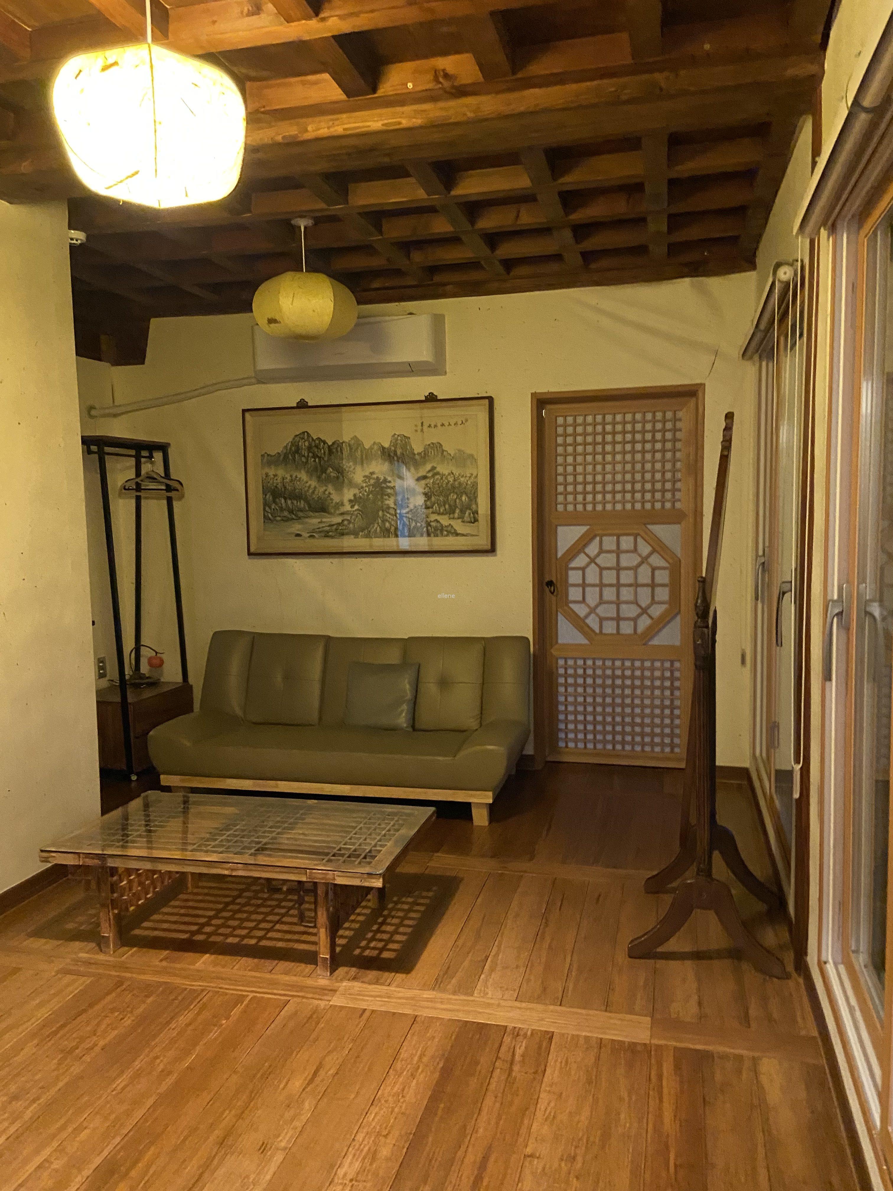 - 2층 – 방 2개(더블 침대방+온돌방), 화장실, 작은 거실