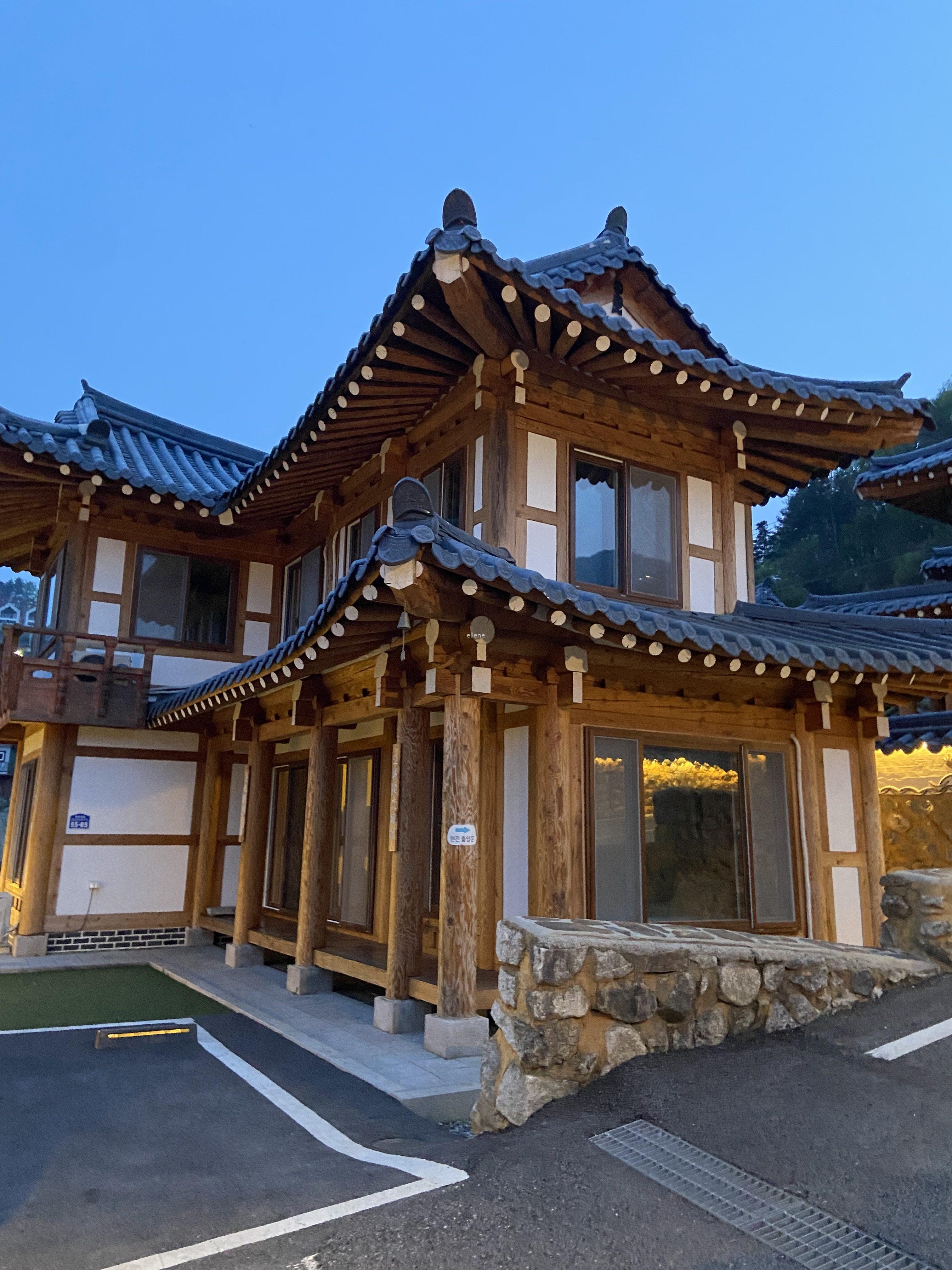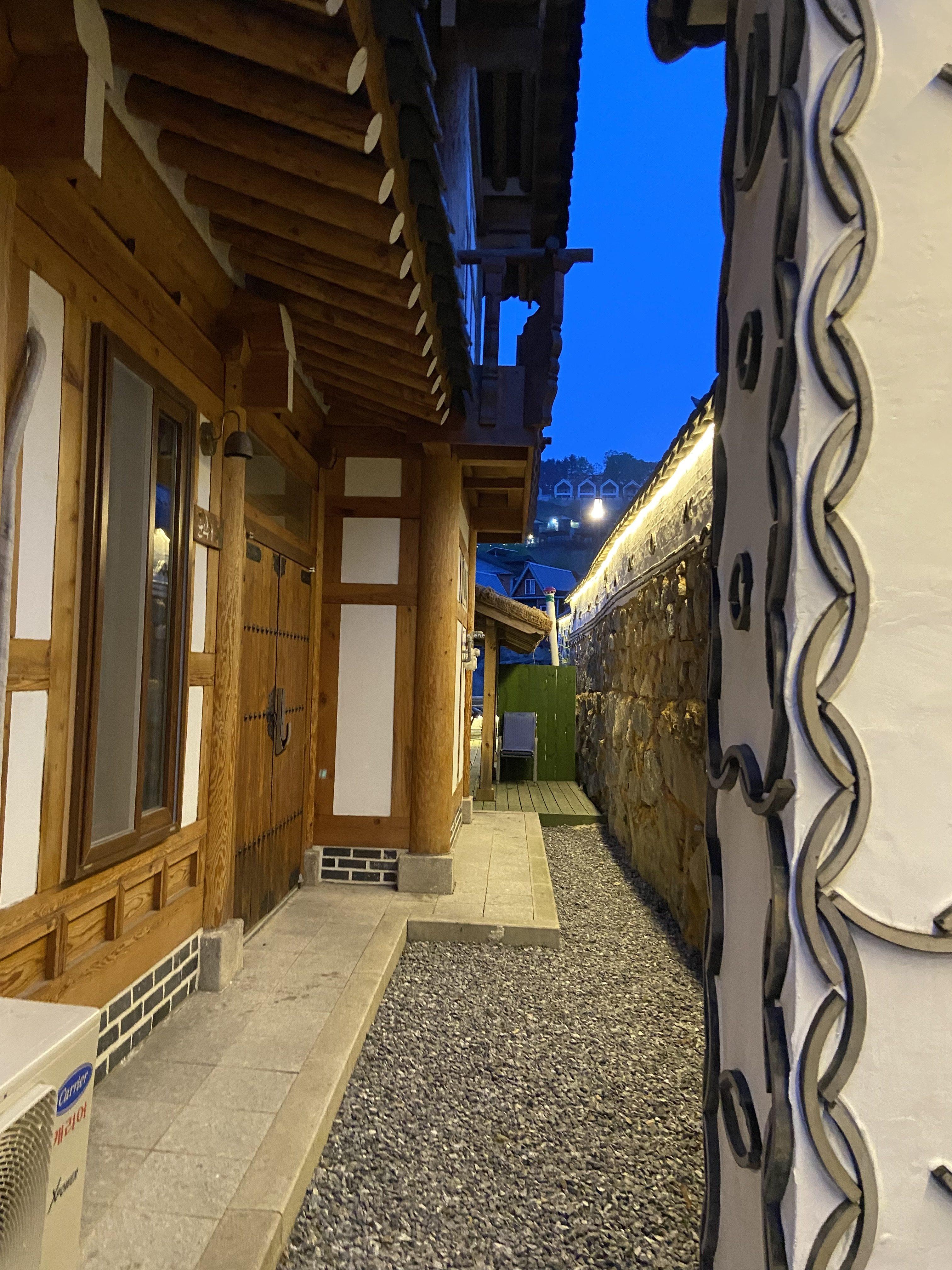 한 팀만 묵을 수 있는 한옥 스타일의 독채 펜션이 한옥마을 안에 여러 채 있는데, 각 펜션마다 구조가 다르다.