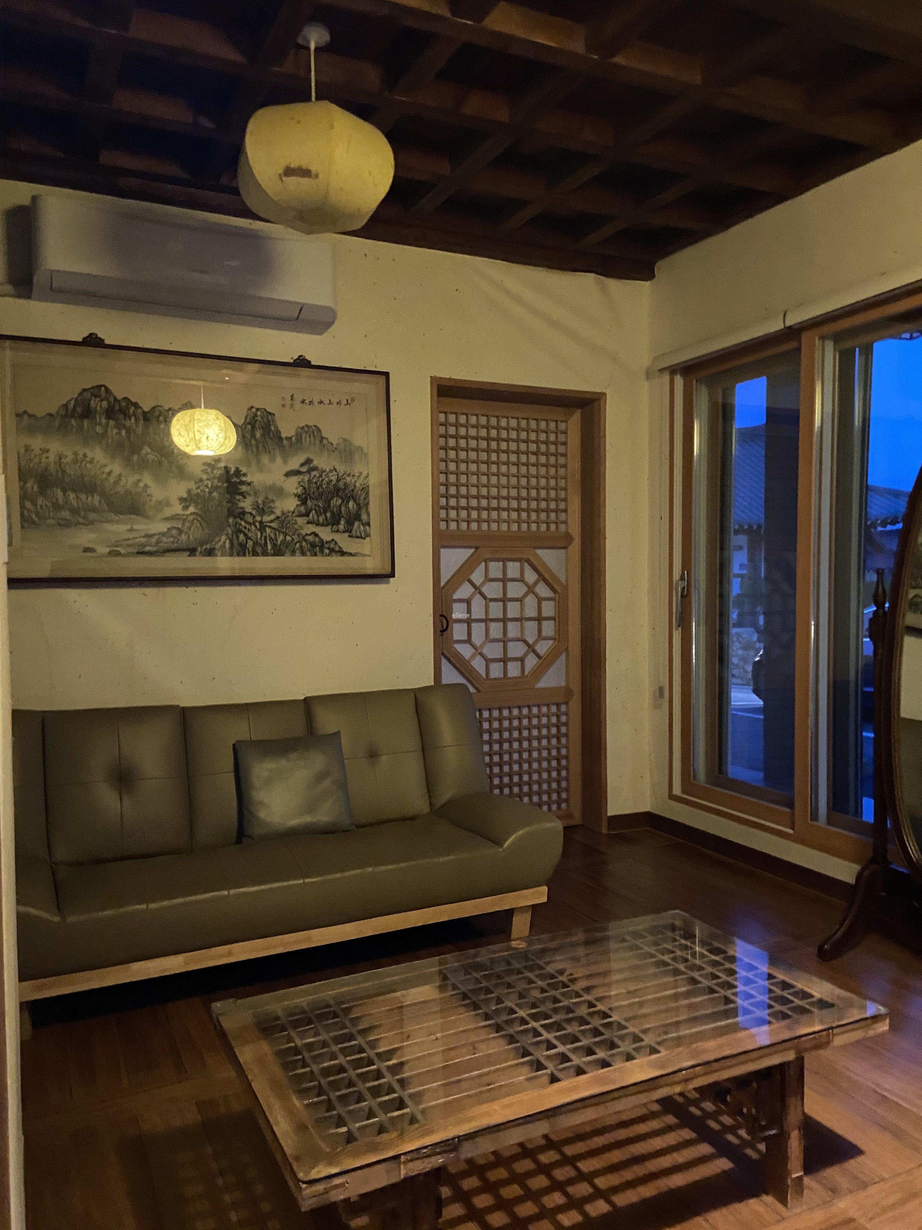 - 2층 – 방 2개(더블 침대방+온돌방), 화장실, 작은 거실