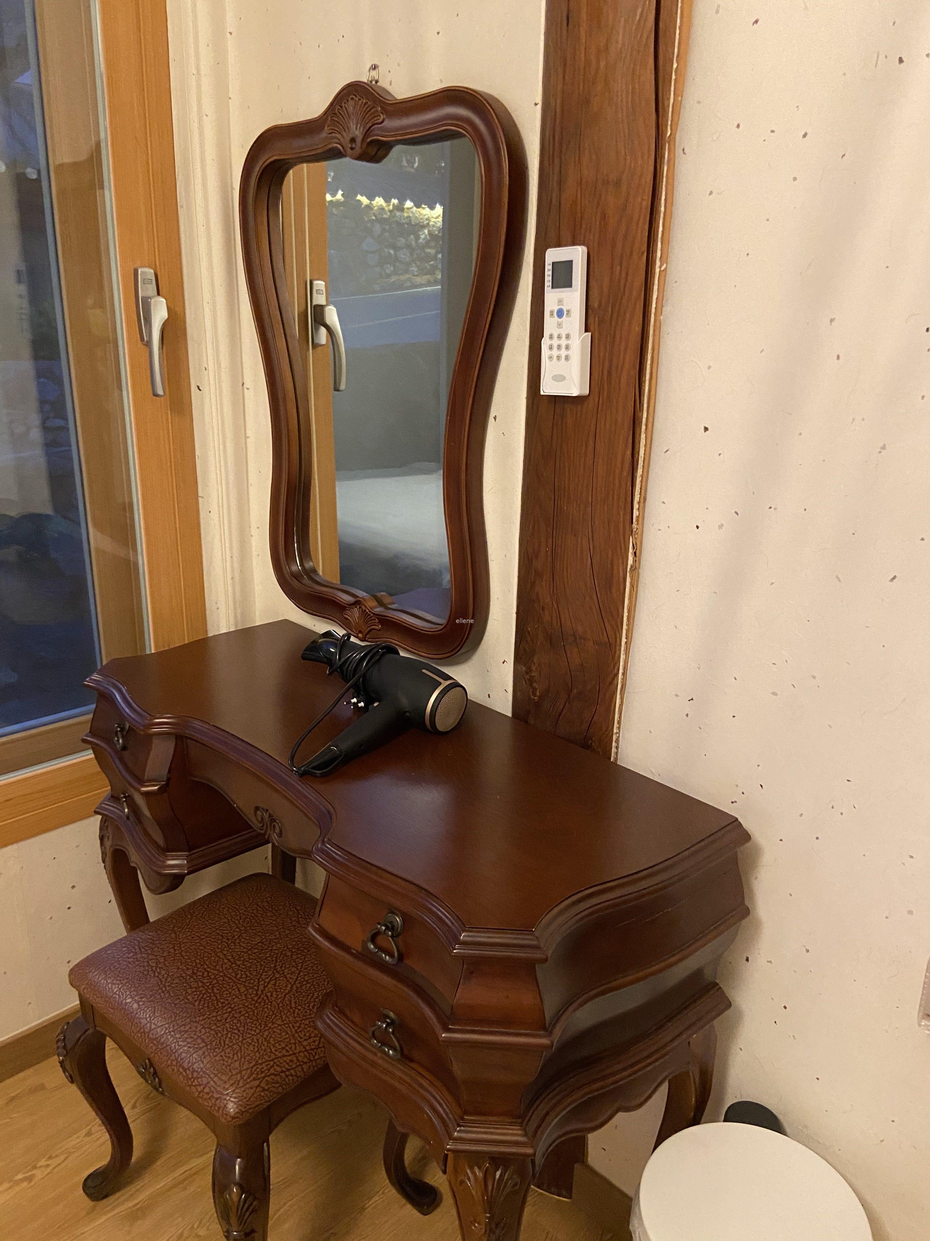 1층에 있는 유일한 방에는 더블 베드가 하나 놓여있다. 바로 앞에는 작은 화장대도 있고.