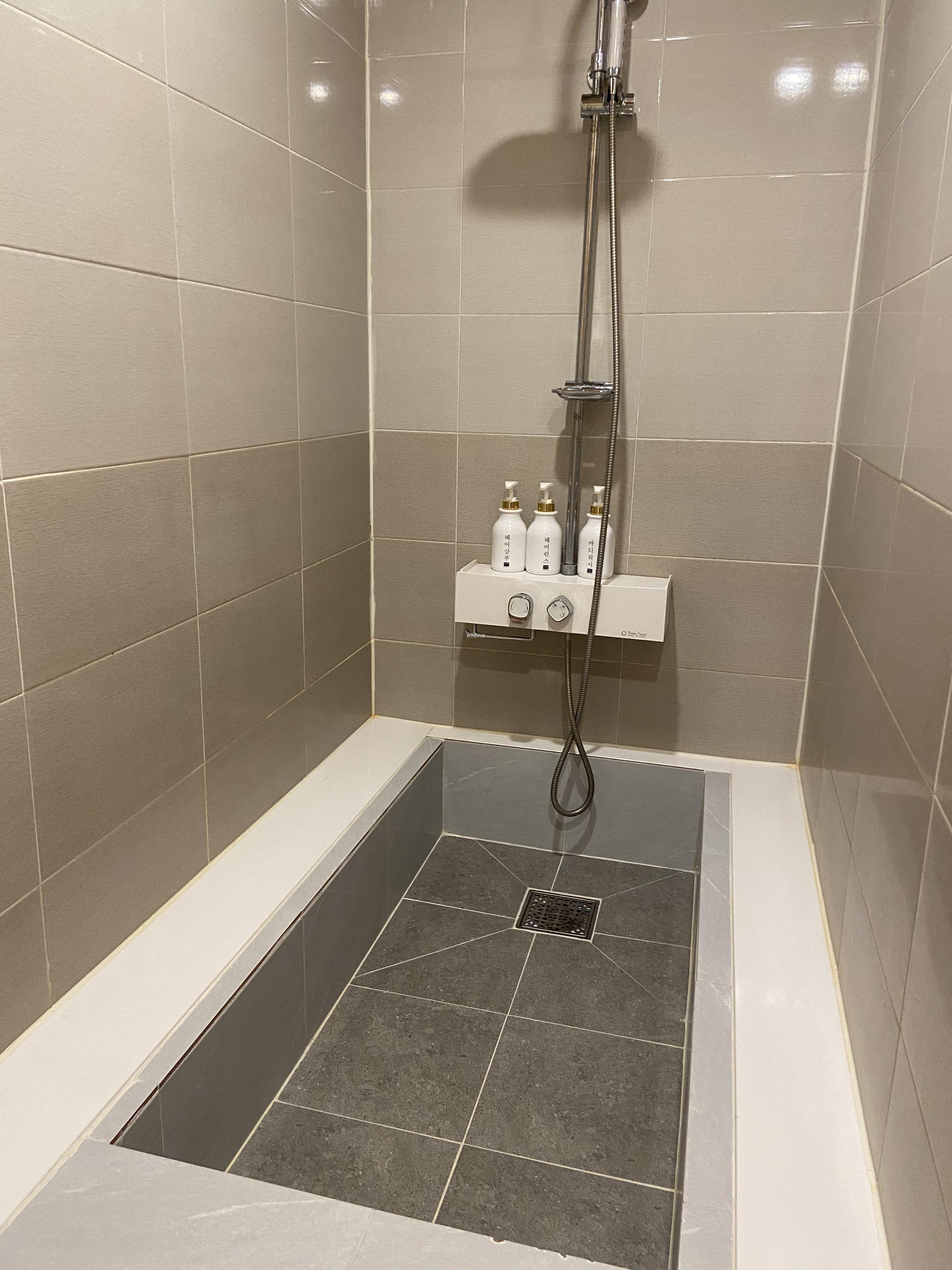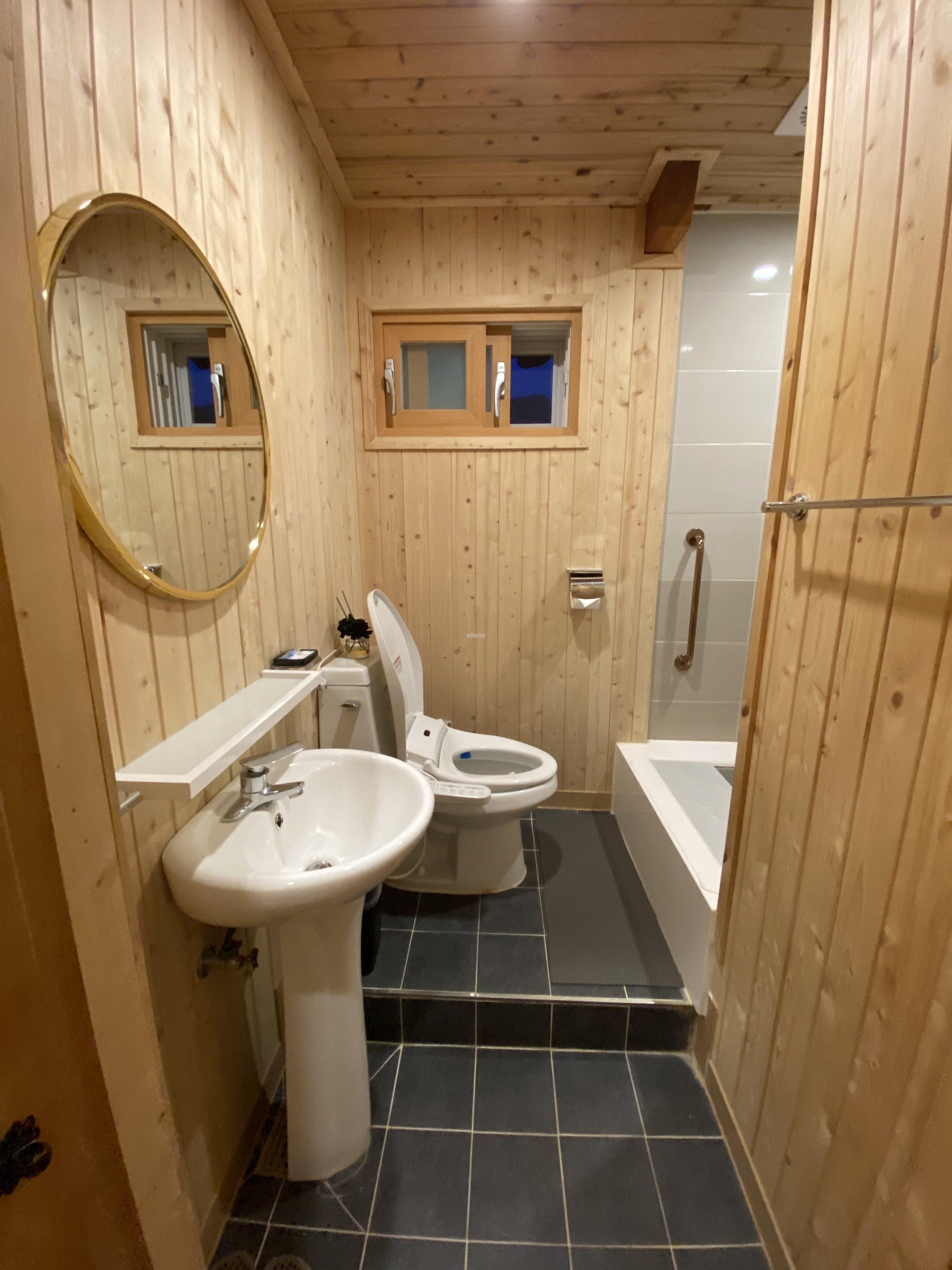 1층 화장실엔 욕조가 없다. 변기, 세면대, 샤워기, 이렇게 딱 필요한 핵심 요소만 갖춰져 있고 끝.