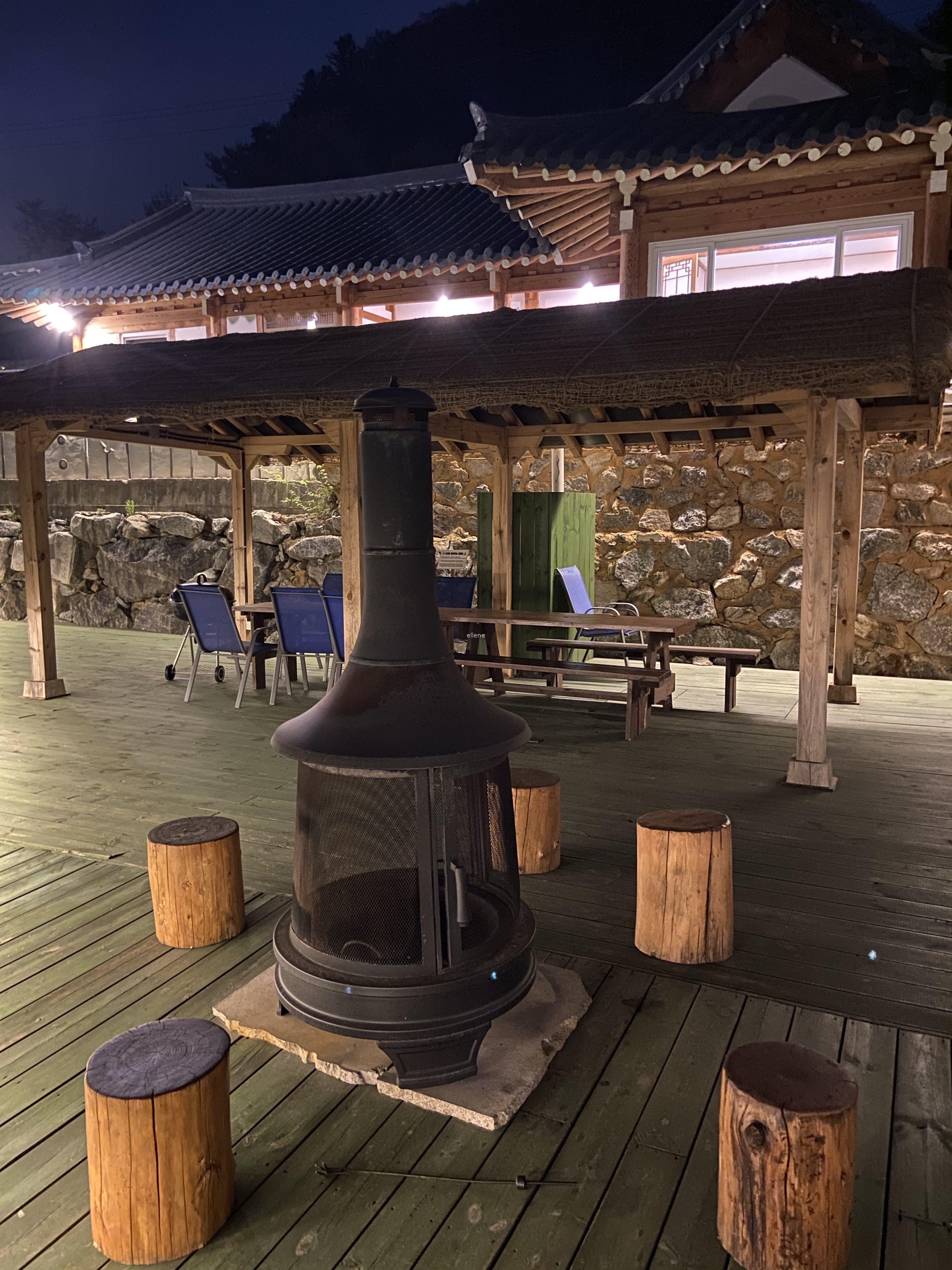 한옥채에서도 다른 펜션과 마찬가지로 바베큐를 해먹을 수 있다. 그리고 하나 더, 장작을 태우며 불멍도 할 수 있다!