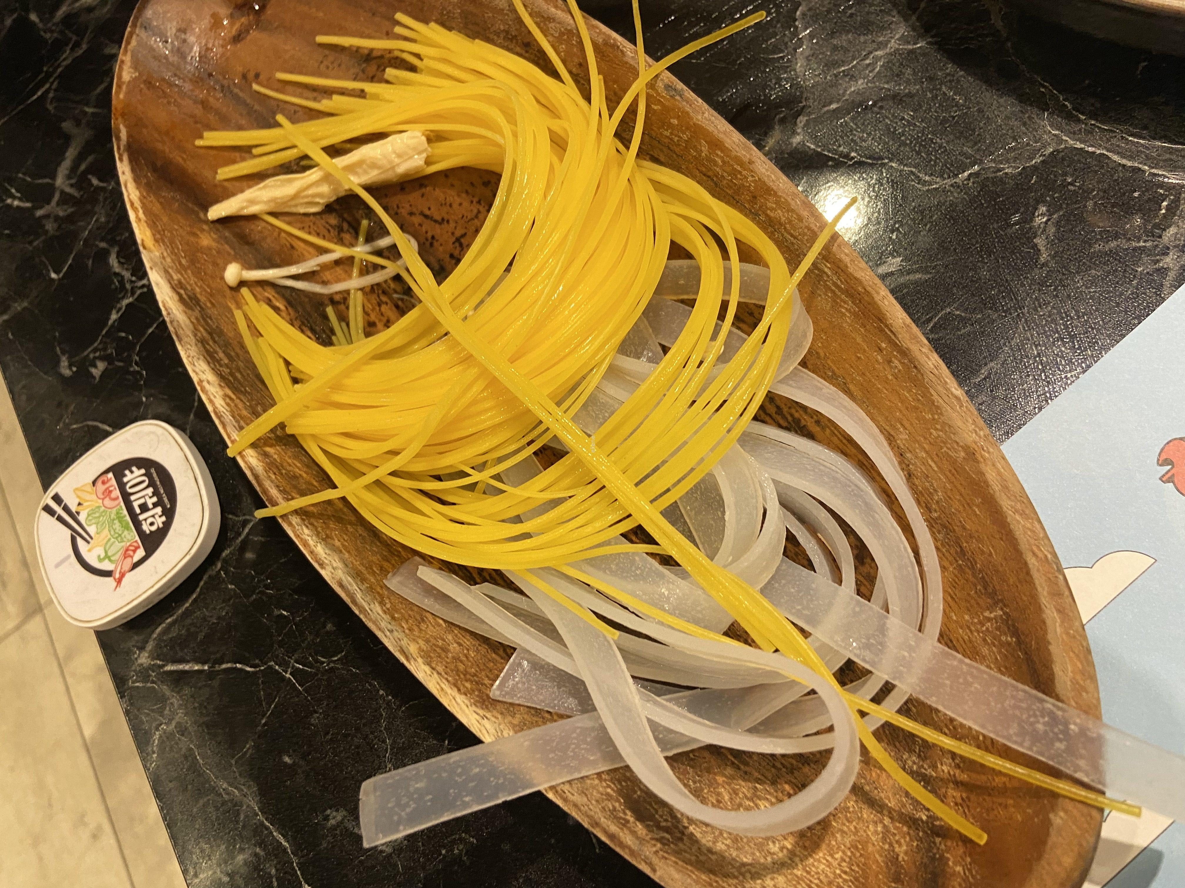 야채와 고기는 질이 좋았다. 사진 상으로는 양이 얼마만큼인지 감이 잘 안 올 수 있는데, 실제로 양이 굉장히 많았다. 양쪽 훠궈탕에 야채를 모두 밀어 넣기도 어려울 정도였음! 고기도 냉동고기의 향이나 맛이 나지 않고 부드러웠다.