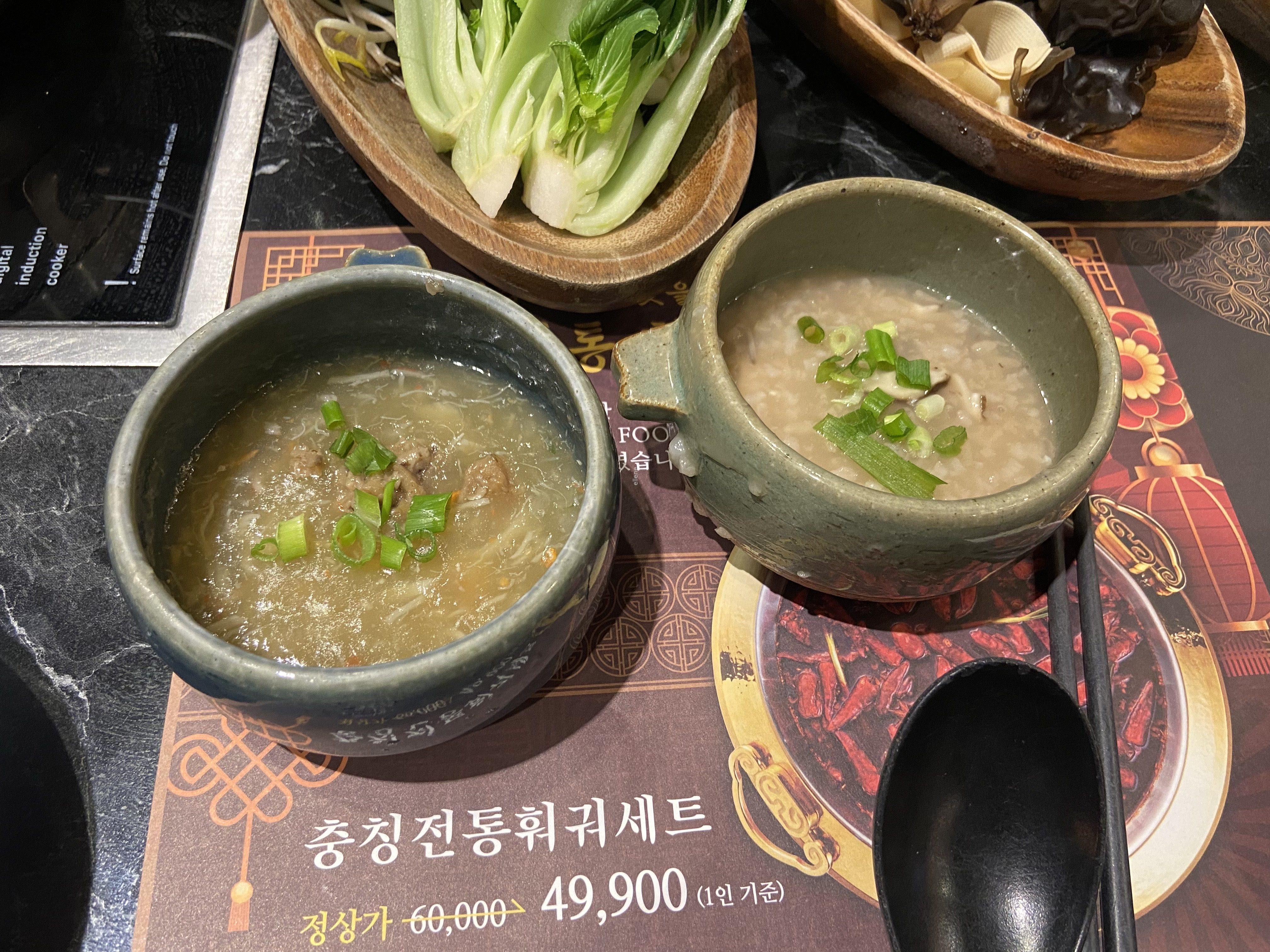 작은 그릇에 게살스프와 죽도 담겨 나왔다. 이 끈적이는 식감을 나도 신랑도 별로 좋아하지 않지만 이상하게 훠궈야 게살스프는 입에 들어간다.