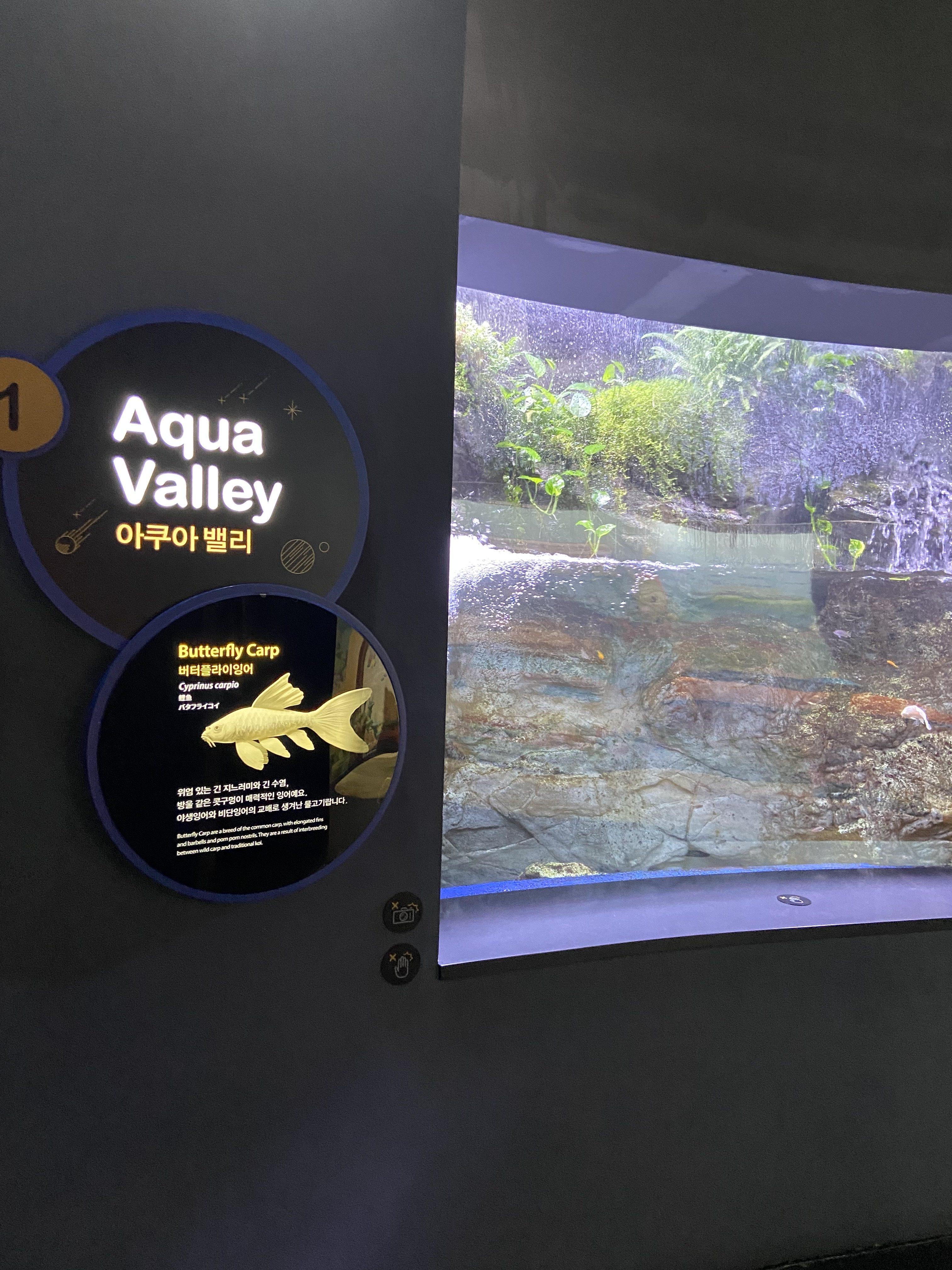 입장할 때 대기는 따로 없었다. 아쿠아리움에 들어서자마자 익숙한 모습들이 보였다. 버터플라이잉어, 해파리, 물범 등등.