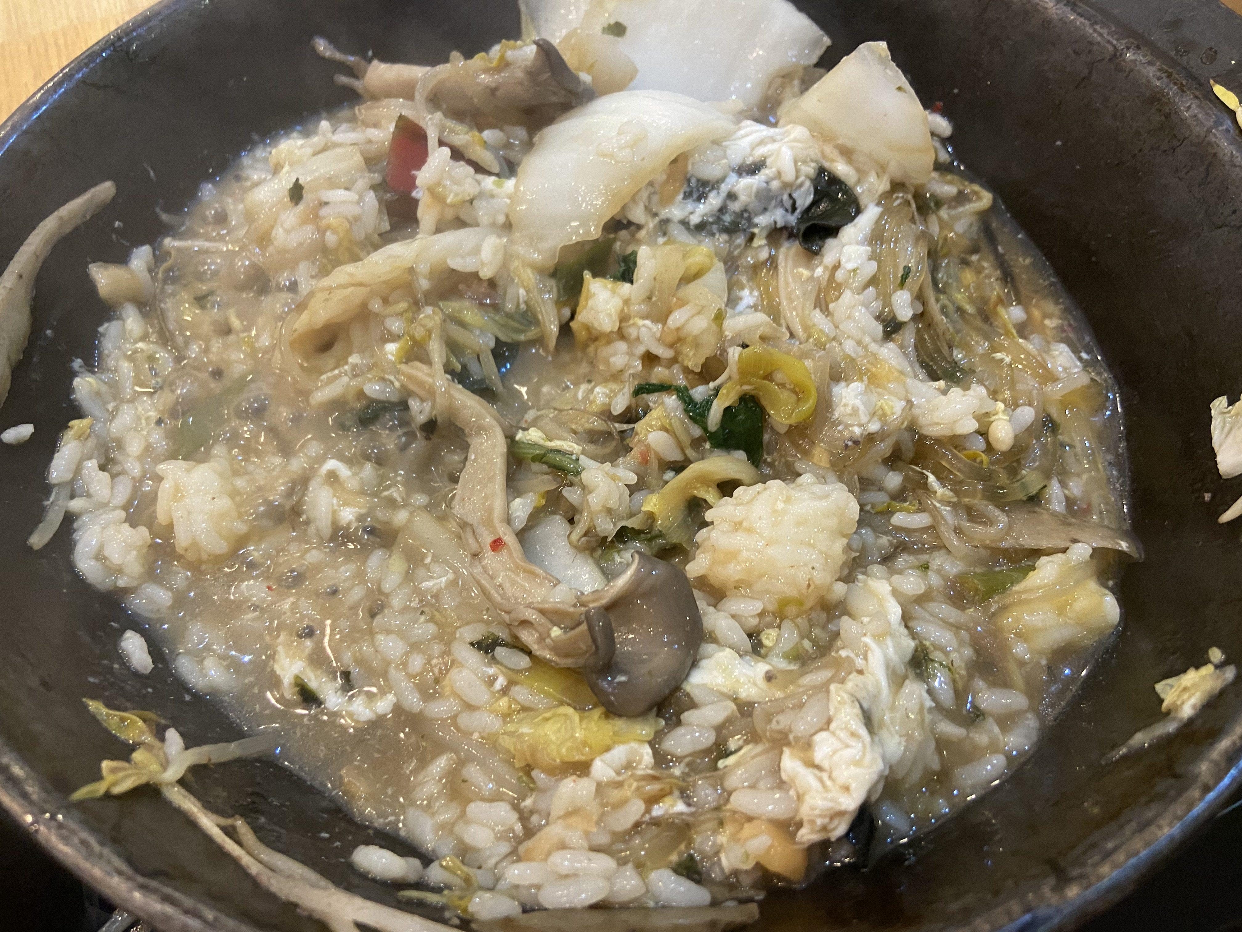 그래서인지 육수에 넣고 밥을 끓이자 내가 제일 좋아하는 정성본 샤브샤브 죽 못지않게 맛있는 죽이 완성됐다.