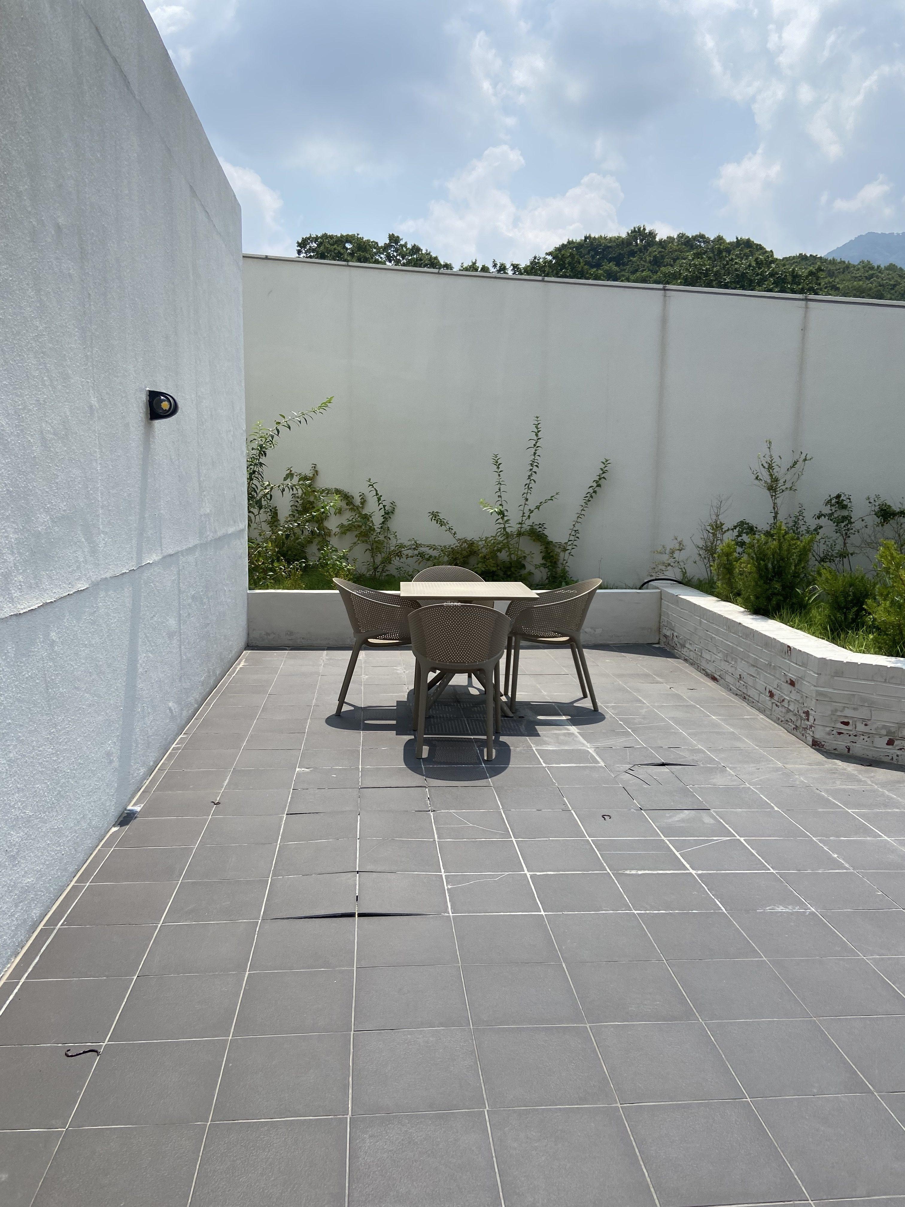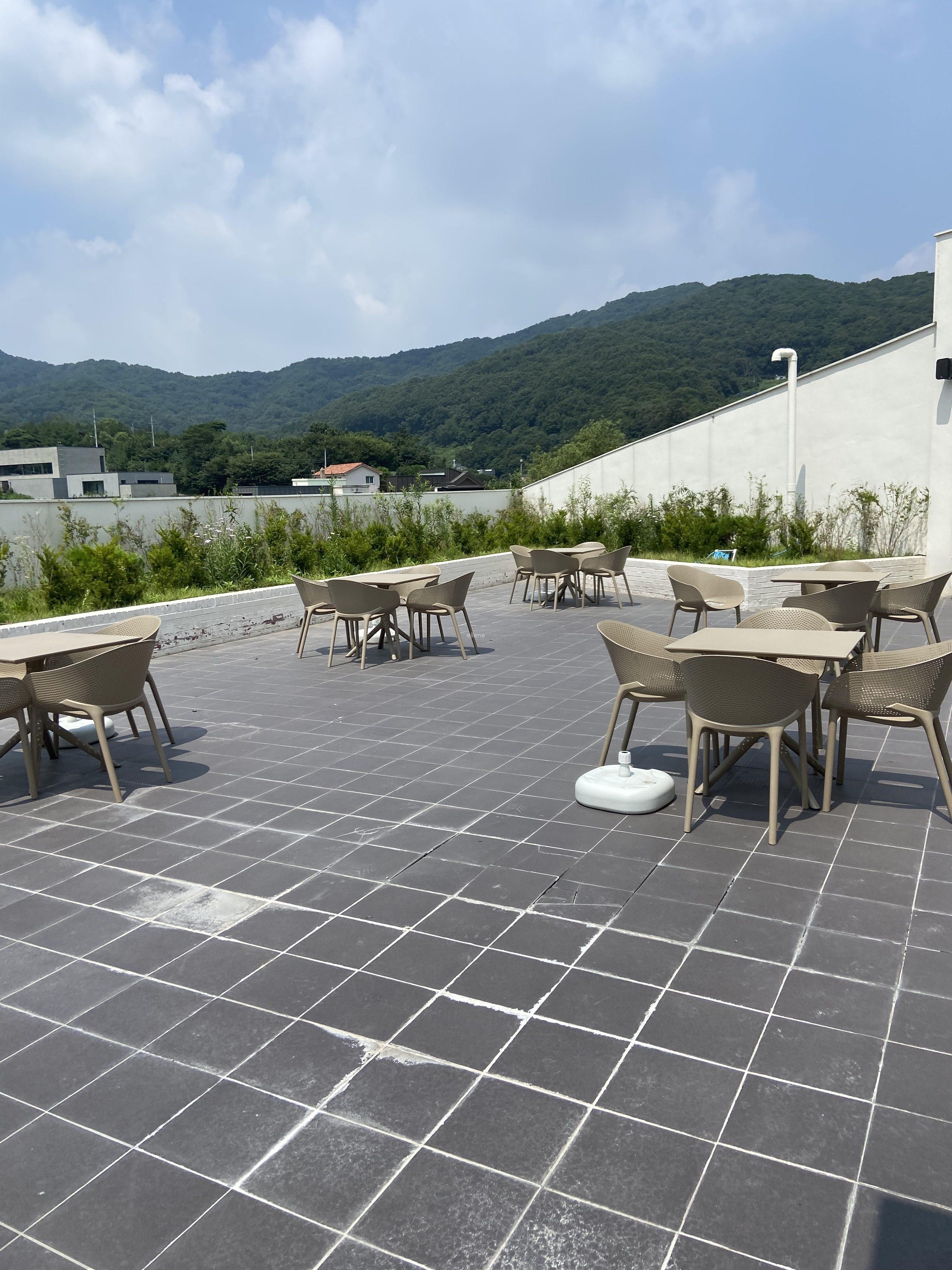 저녁 시간대나 봄, 가을같은 예쁜 계절에는 이 테라스에서 음식을 먹는 것도 좋겠네요. 요즘같은 찜통더위에는.. 안됩니다 여러분!