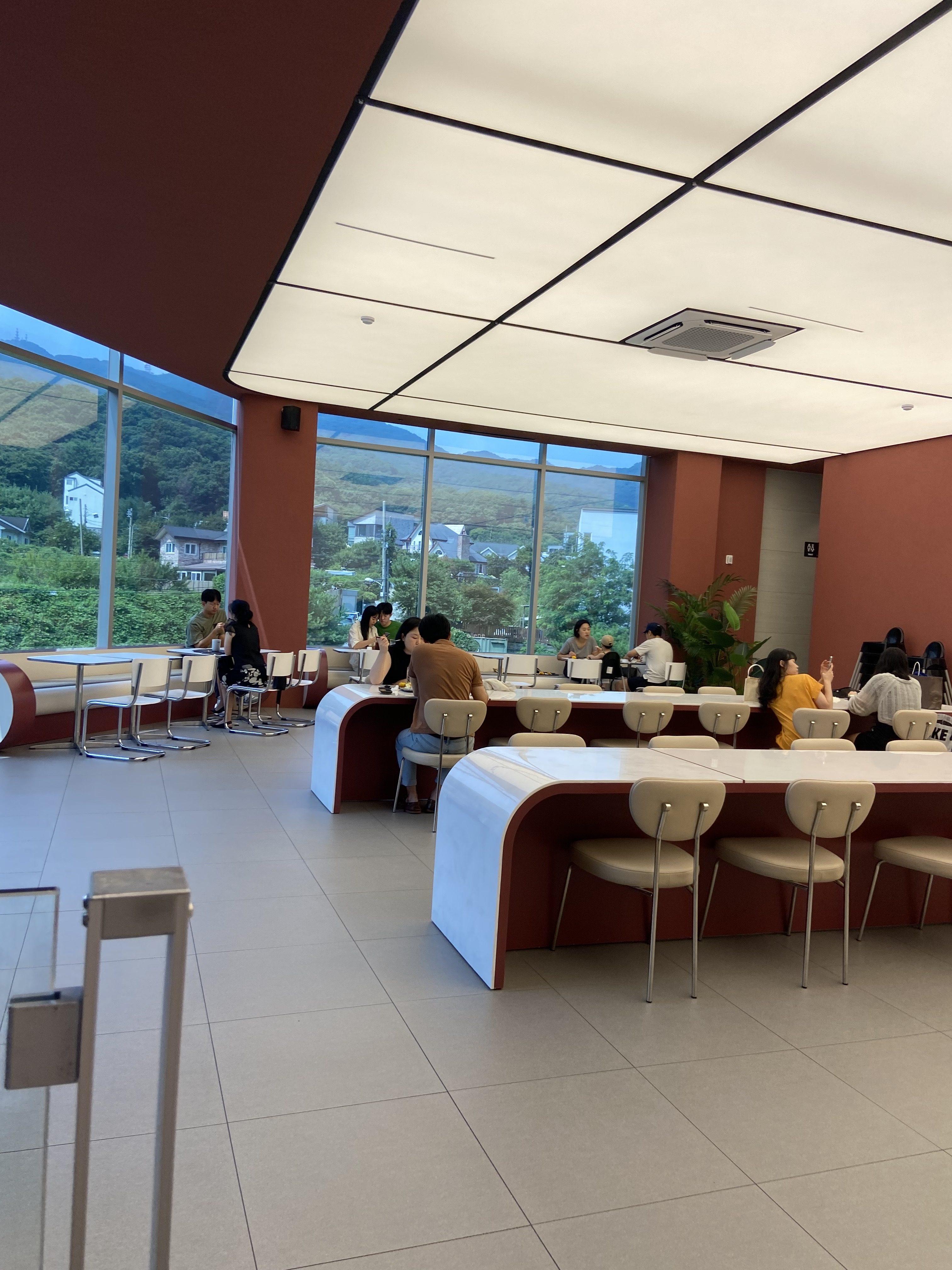 2층은 통창이 있어 바깥쪽 산이 잘 보인답니다. 엄청나게 멋진 전경은 아니지만, 초록초록한 모습이 보여 식사하며 힐링하기 좋아요. 🙂