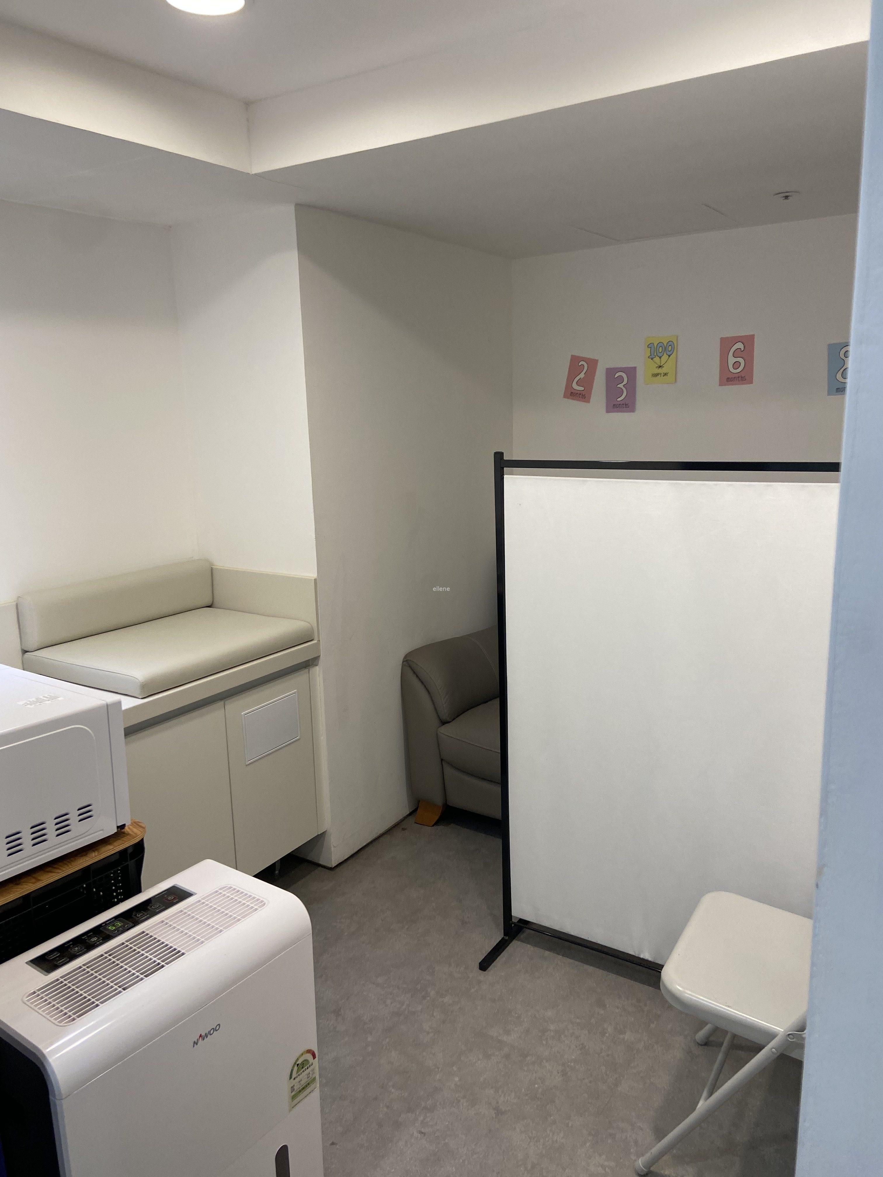 수유실 안에는 전자레인지가 있었어요. 우리는 이용하지 않았지만, 급하게 아기 이유식이나 유아식을 데워 먹여야 할 때 유용하게 쓸 것 같아요. 기저귀갈이대 안 쪽에는 바깥에서 보이지 않는 수유실도 있어요!