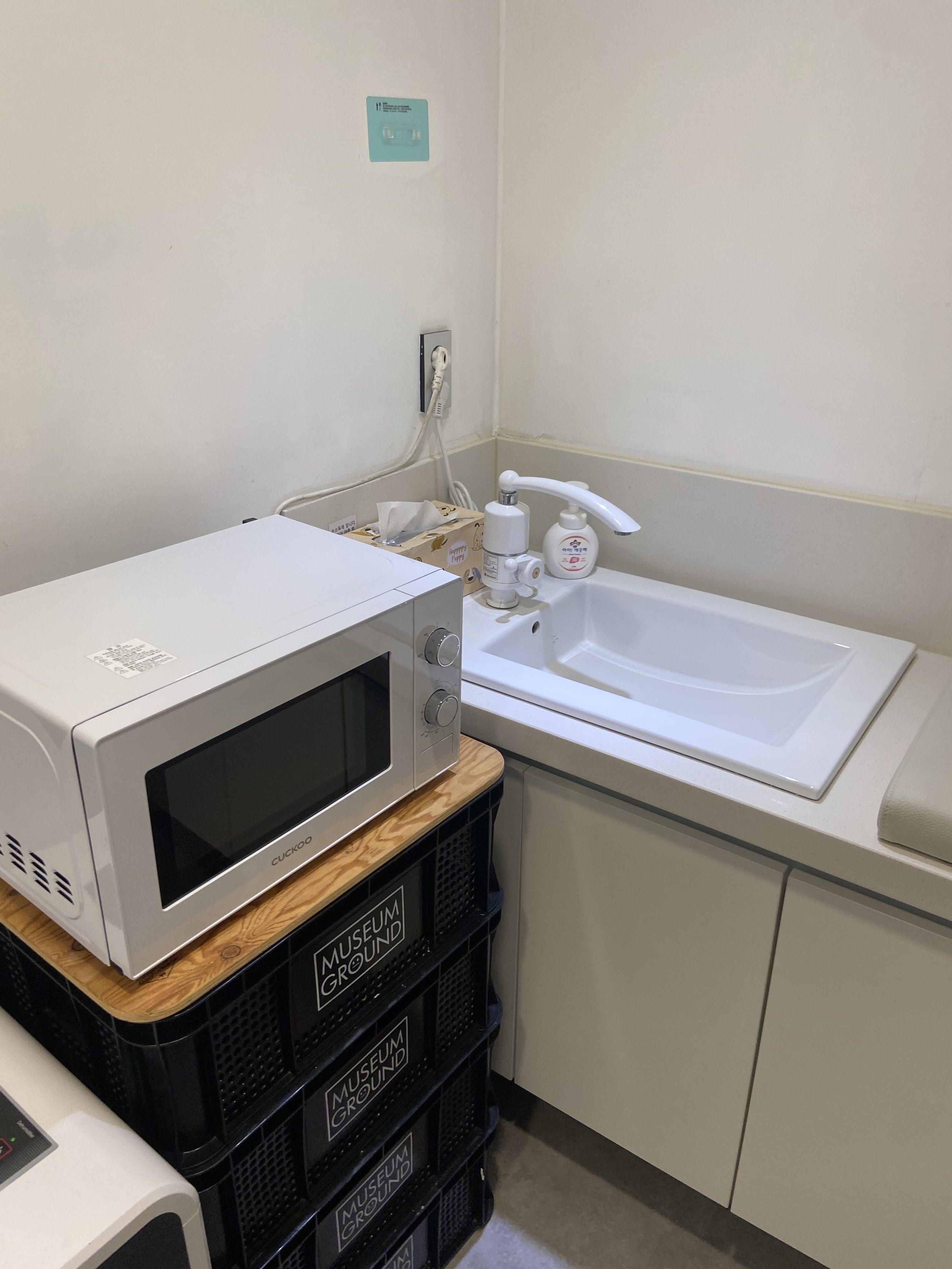 전자렌지와 기저귀갈이대가 있는 수유실