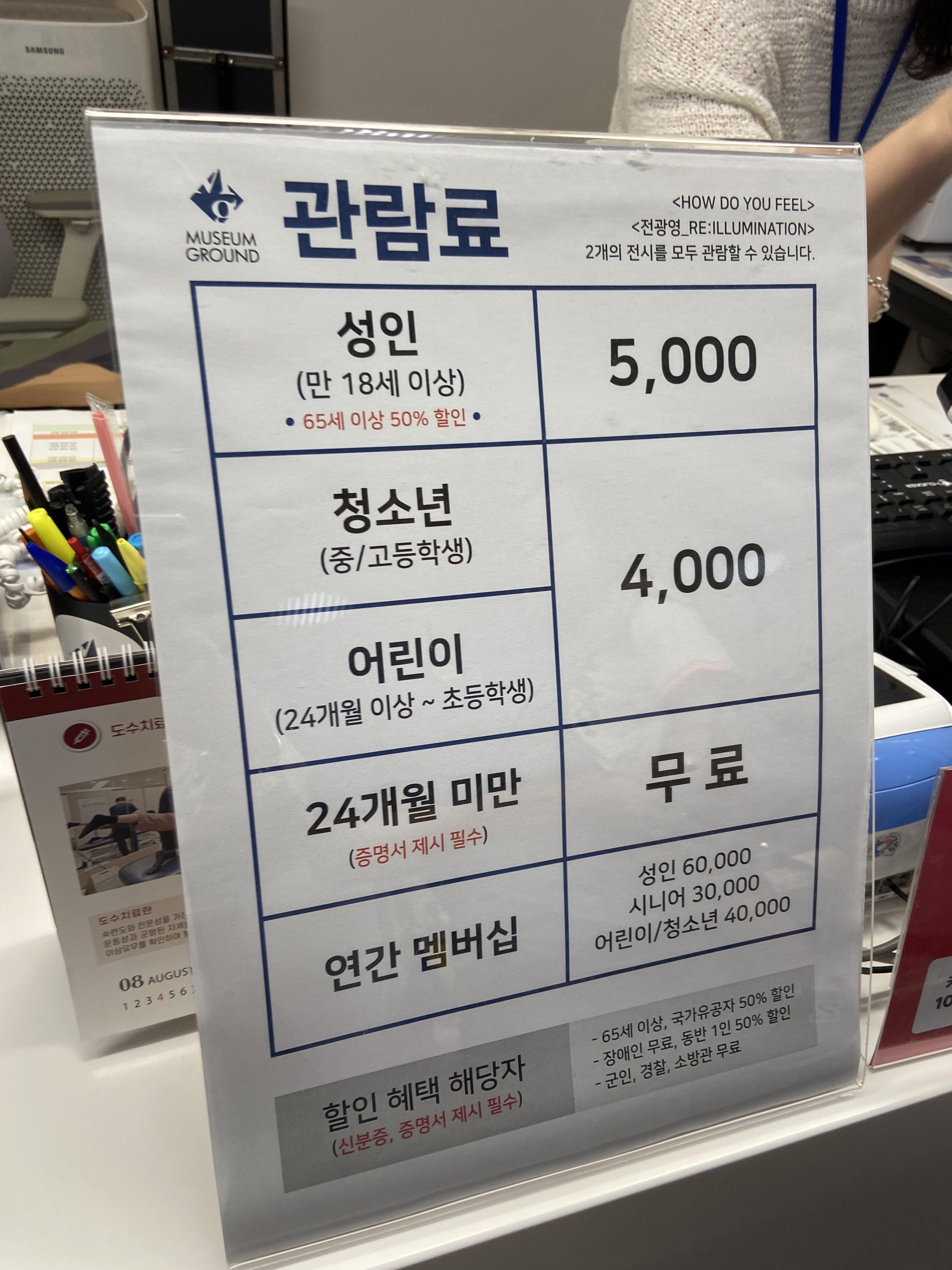 - 전시 입장료: 성인 5,000원 / 아기는 24개월까지 무료(증빙서류 필수)