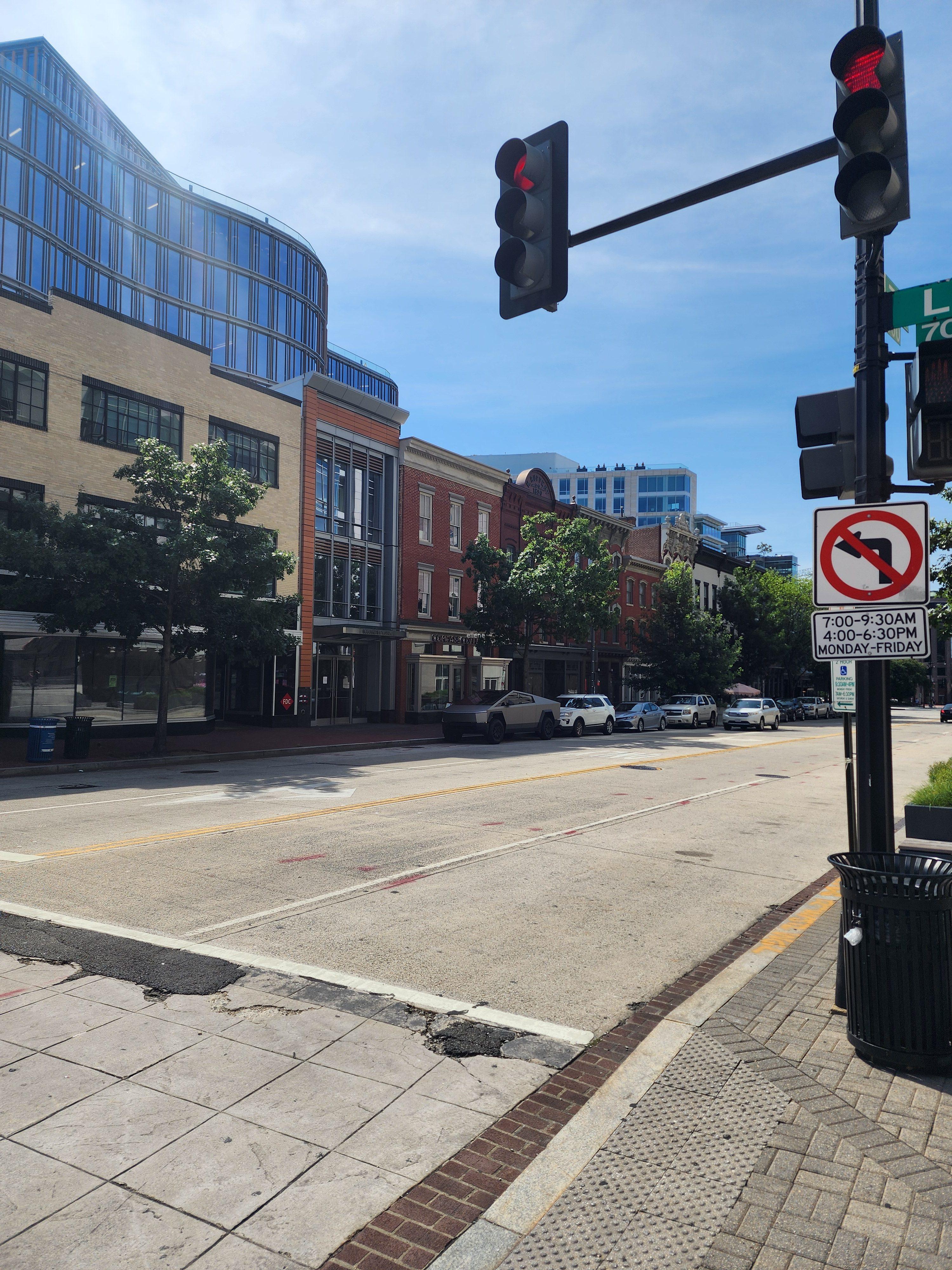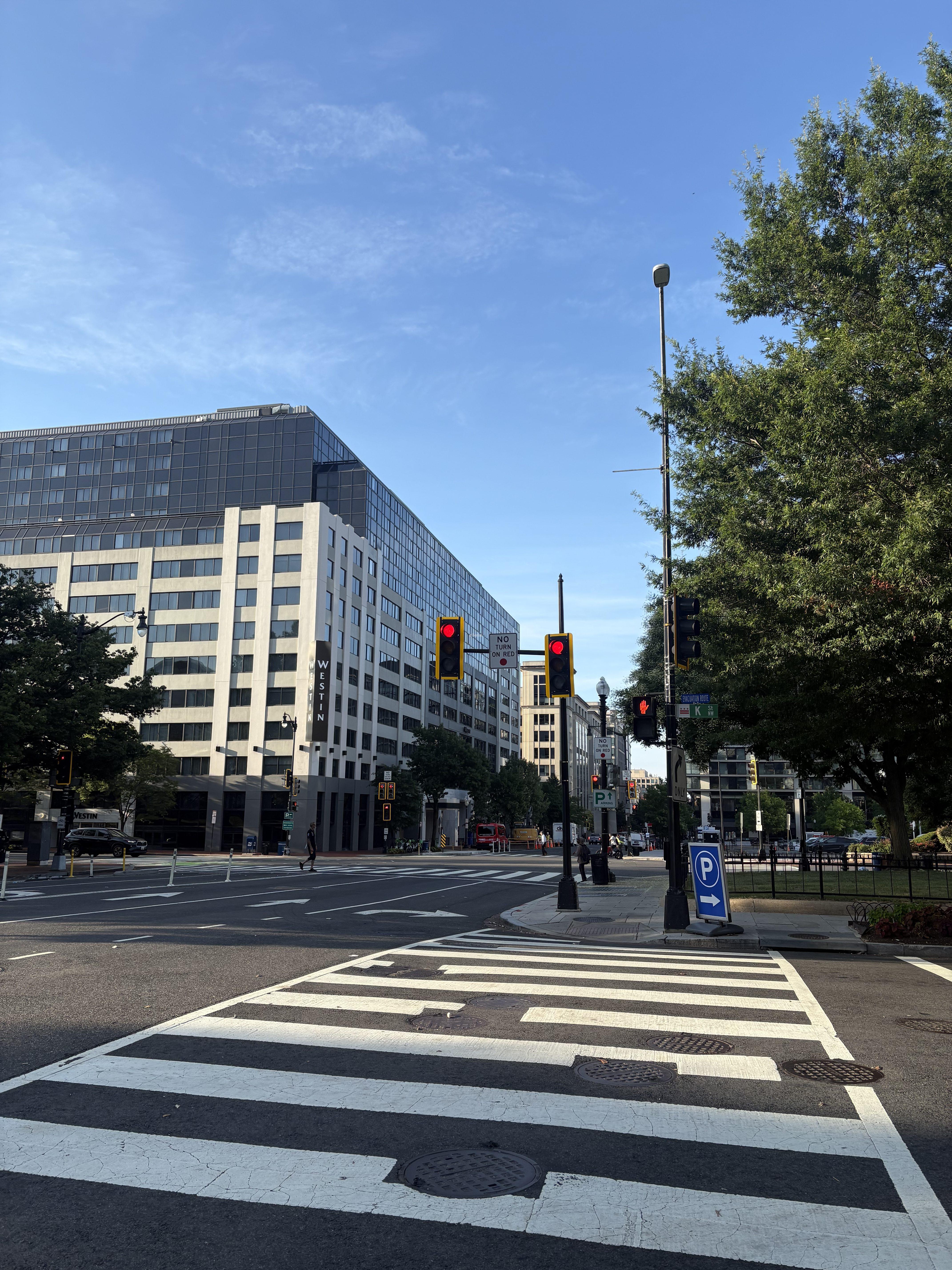 넓게 뻗어있는 DC 도시의 도로와 도보.