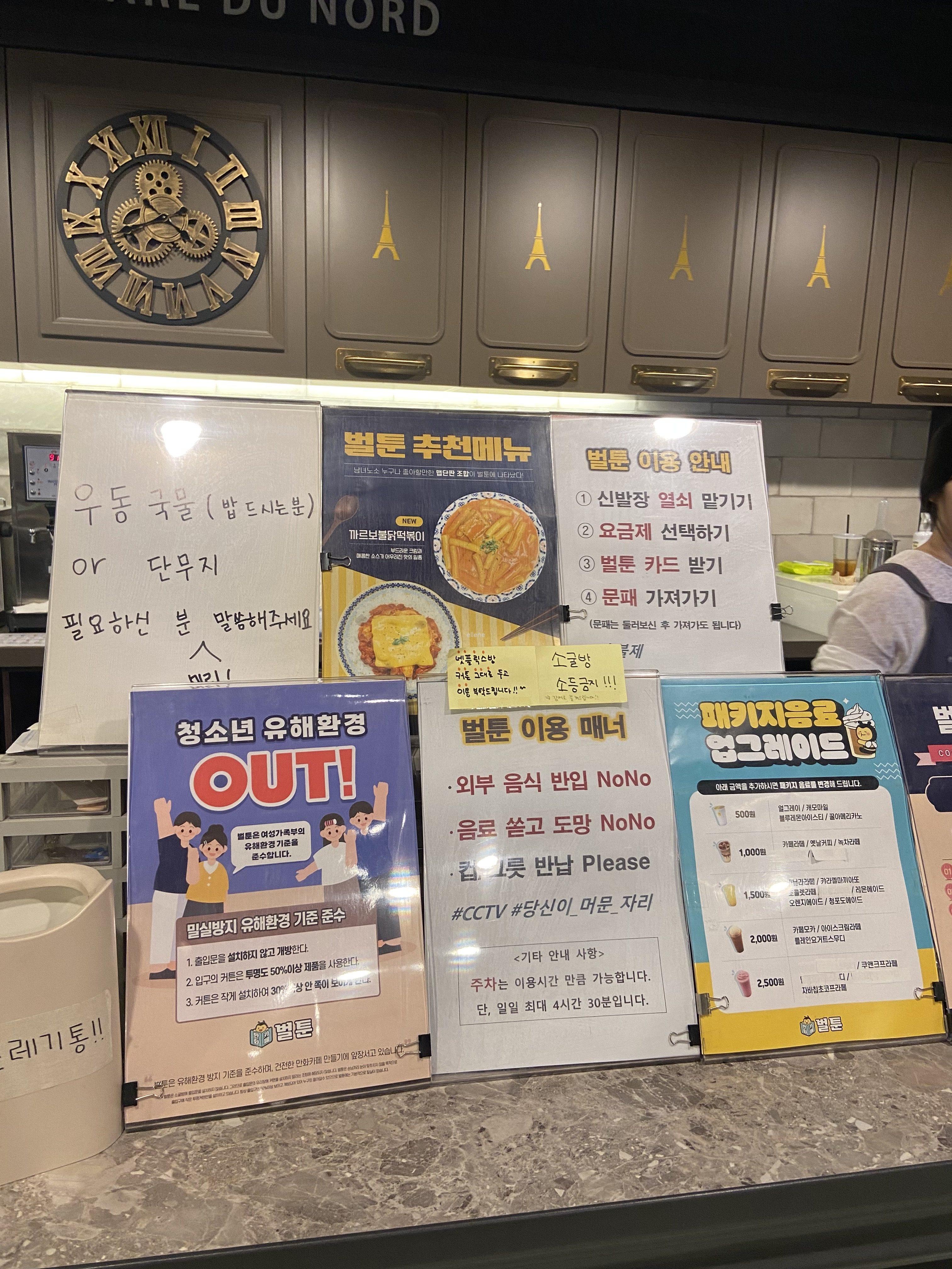 벌툰 이용방법: 신발장에 신발 넣고 신발장 키를 카운터에 제출 -> 이용권 선택 후 만화카페 즐기기 -> 결제 후 신발장 키 받기
