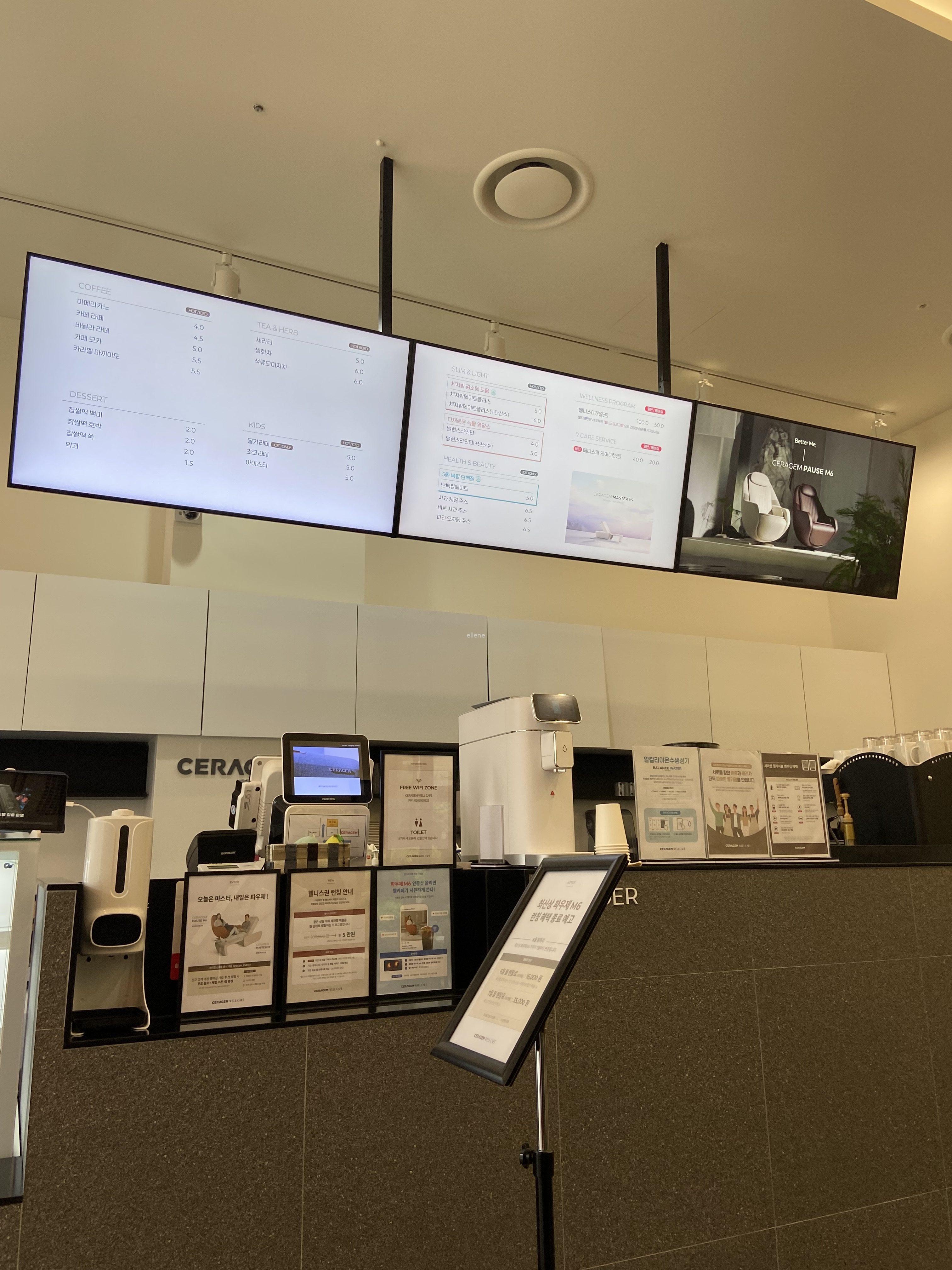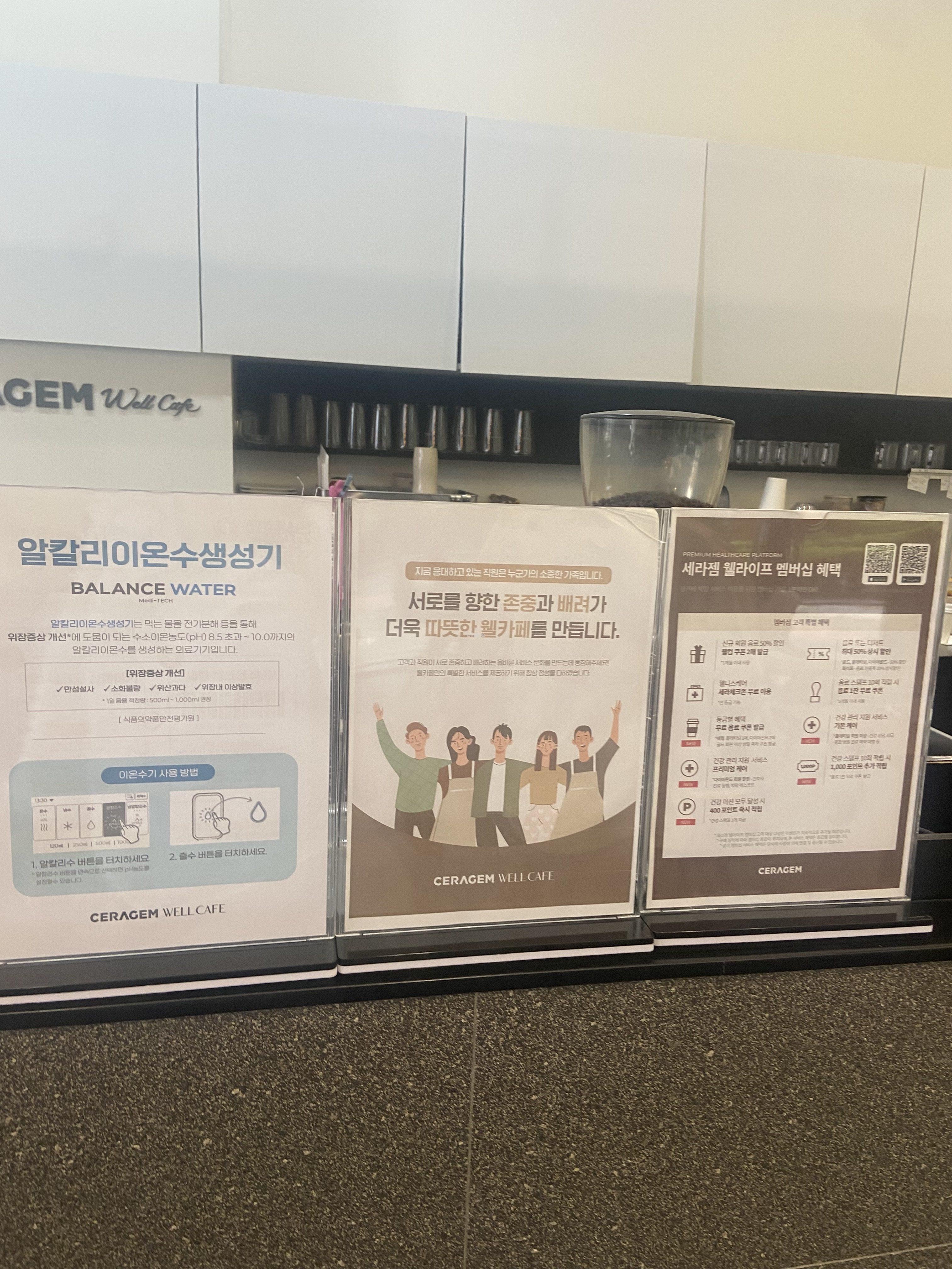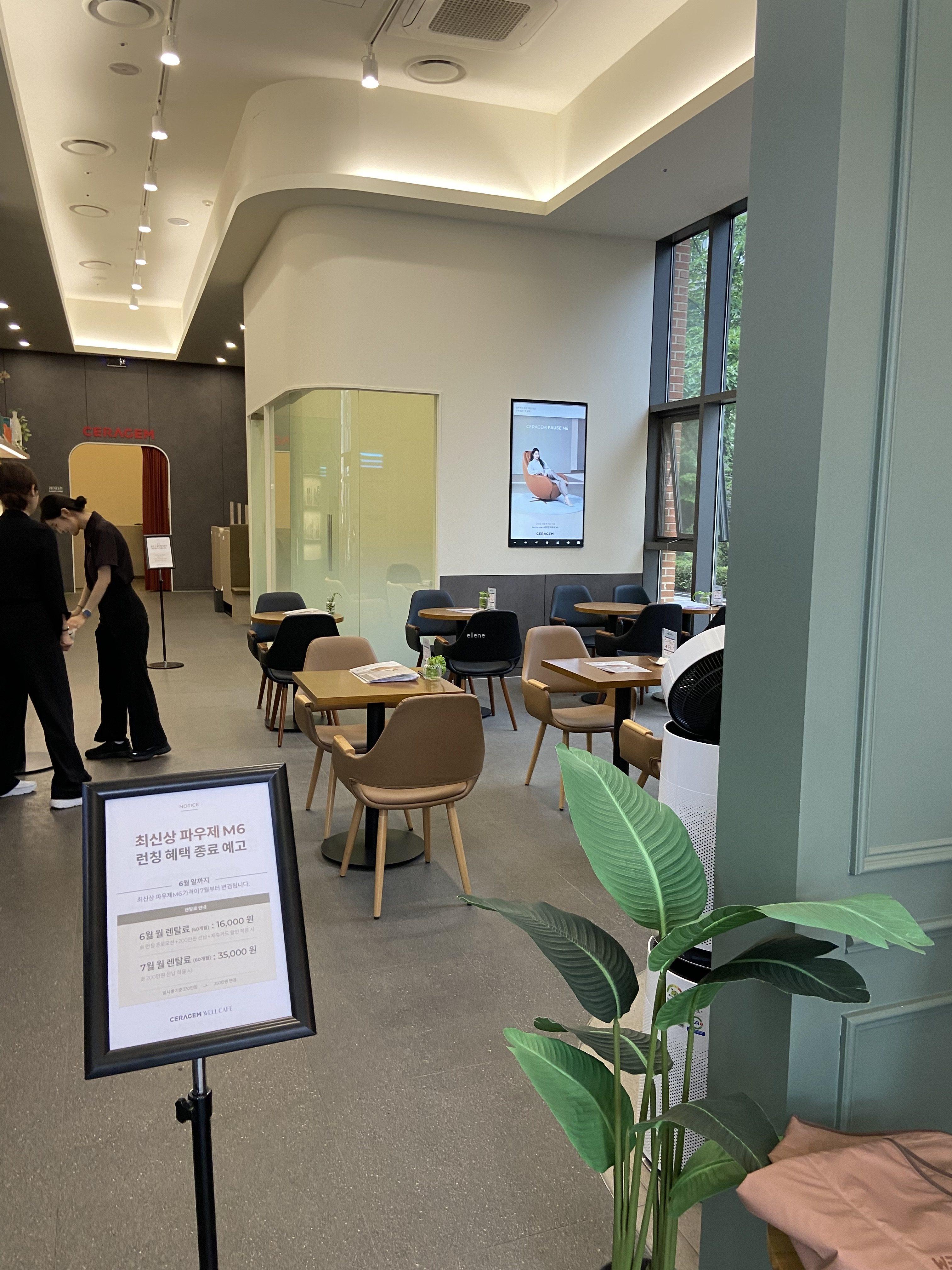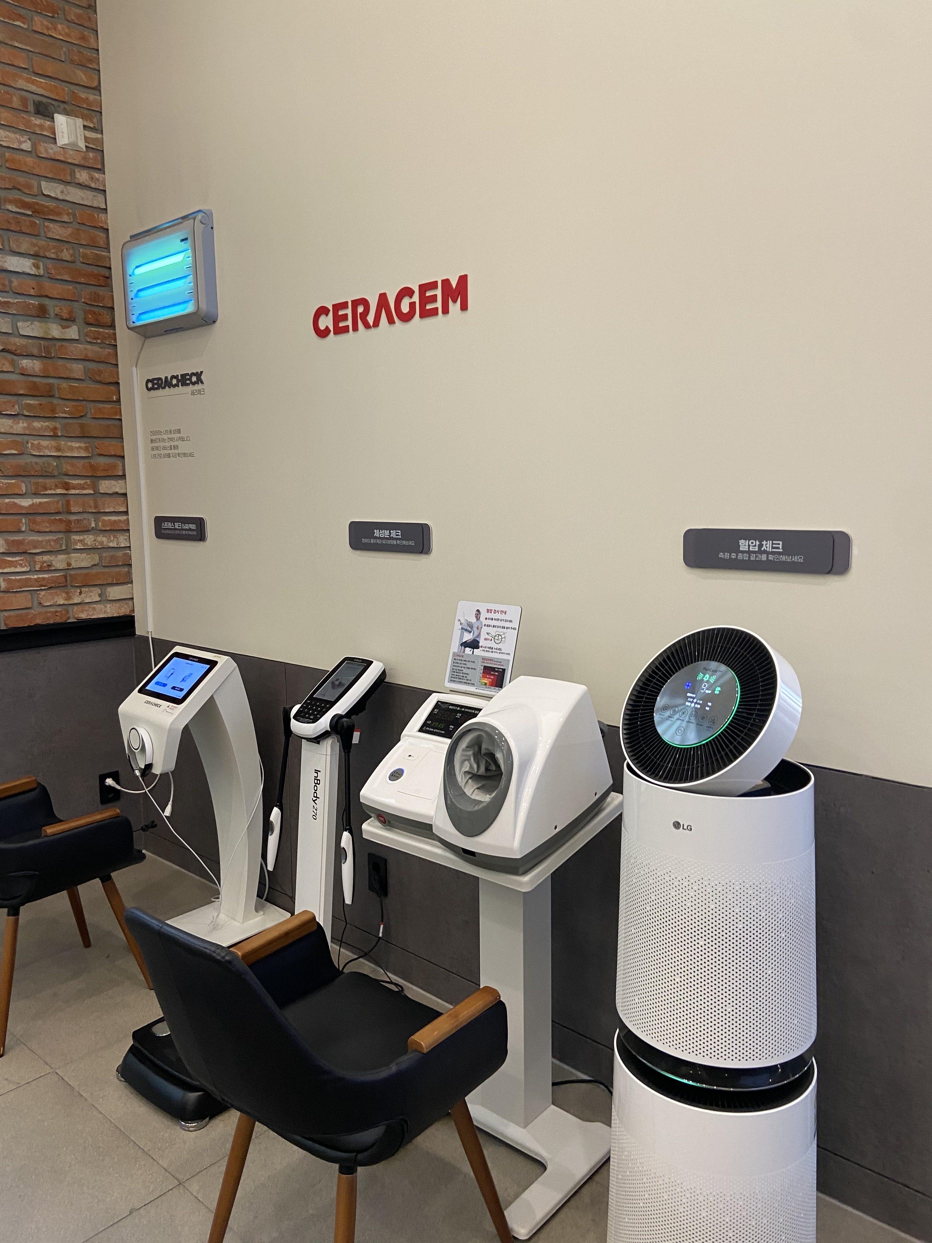 기다리는 동안 매장 이곳 저곳을 구경했는데, 혈압 측정기, 인바디 기기, 세라젬 안내 책자 등 볼거리랑 즐길거리가 많고 테이블도 곳곳에 많이 비치되어있어 대기 시간이 지루하게 느껴지지 않았다.