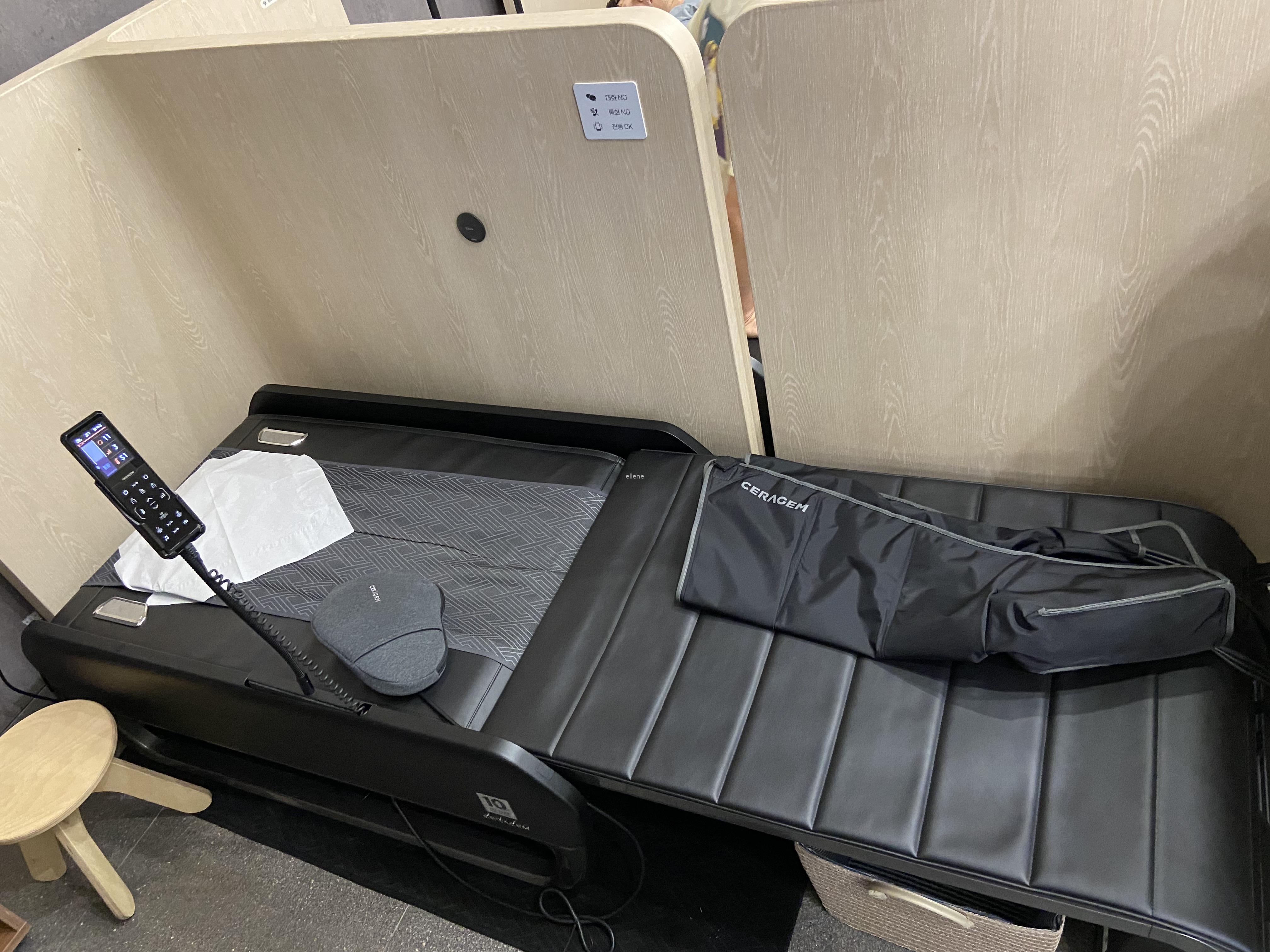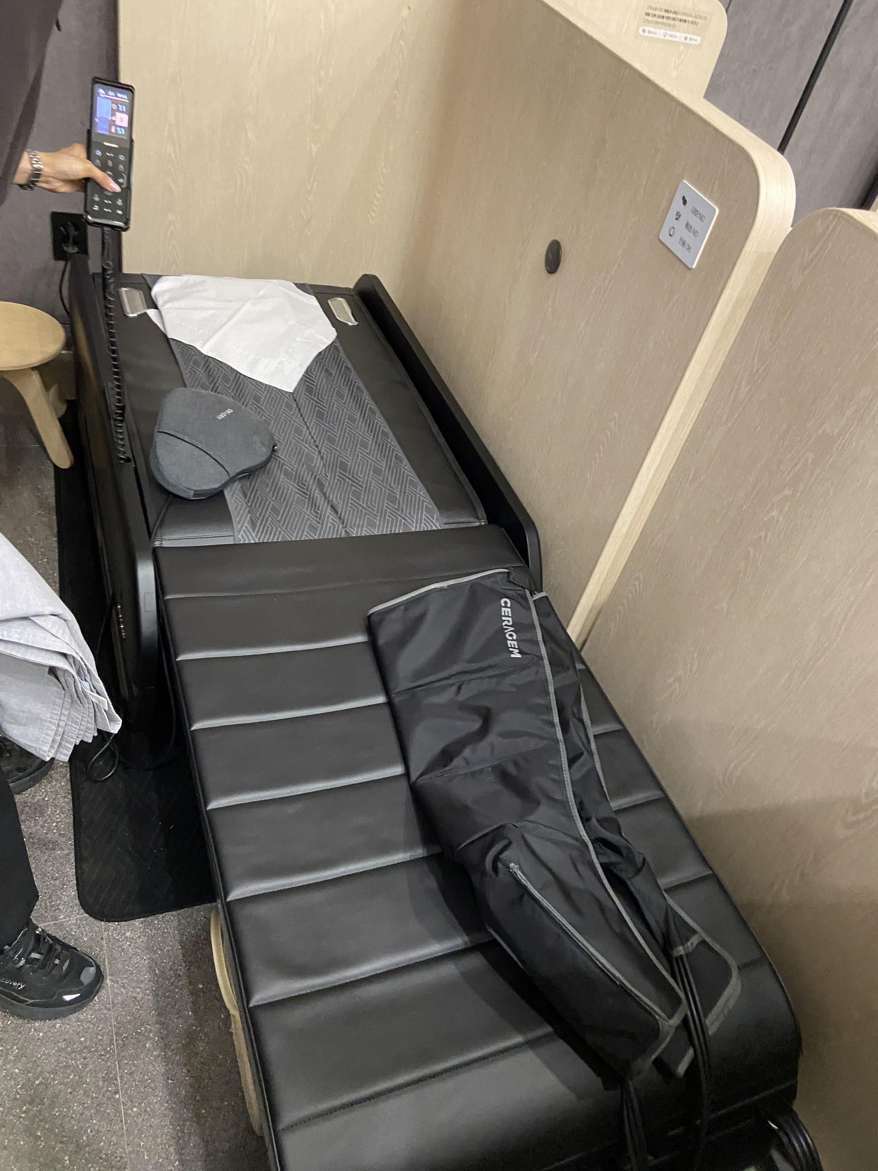 우리는 각자 기기 한 대에 누워 설명을 듣고 마사지를 받기 시작했다.