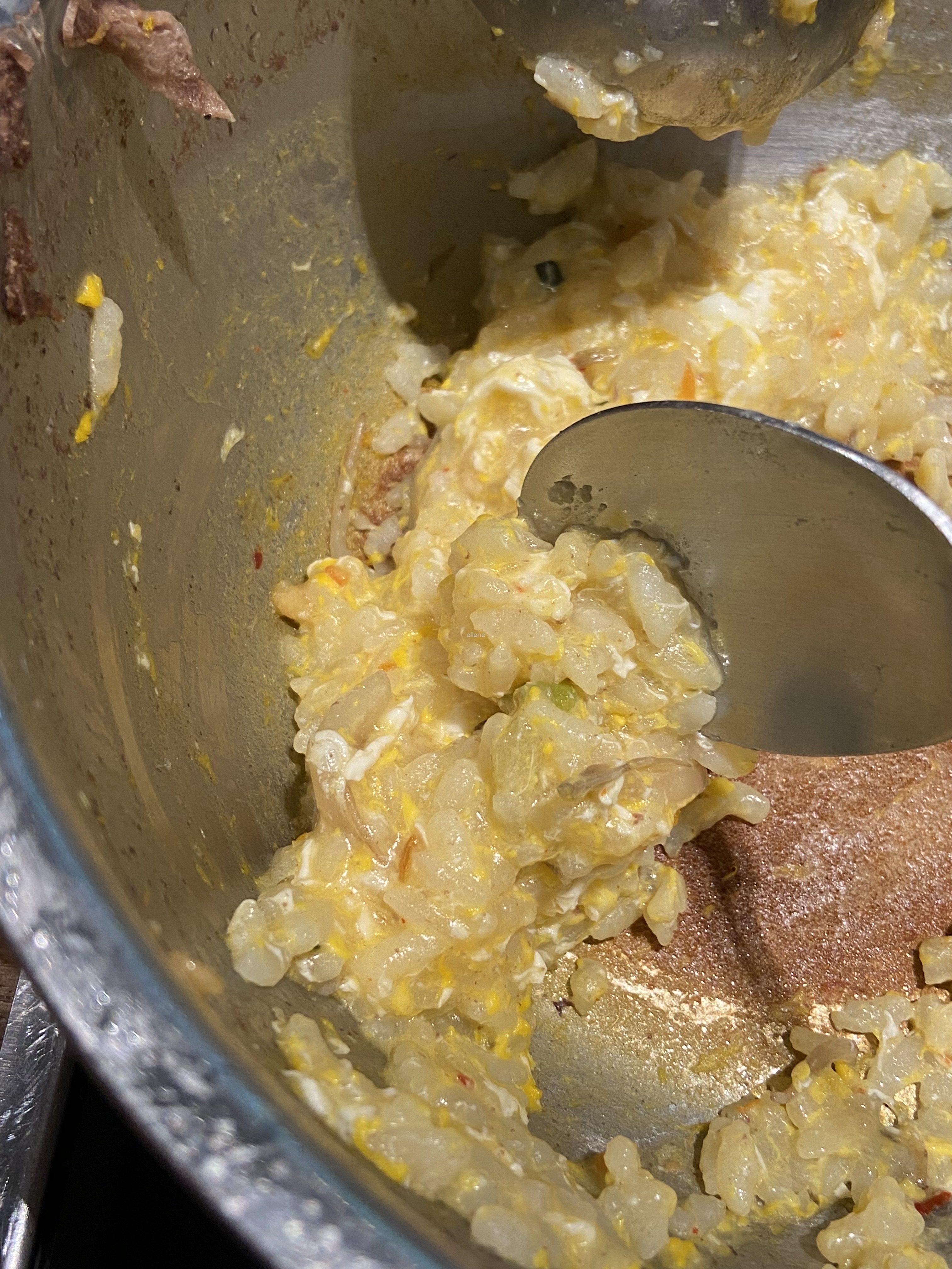 칼국수를 먹고 남은 국물로 야무지게 죽까지 만들어 먹었다. 죽만 만들어먹을 수 있을 정도로 국물을 덜어내고, 남은 국물에 테이블에 놓인 달걀, 밥을 넣어 볶기! 바닥에 밥이 약간 눌러붙을 정도로 졸여 죽을 만들어먹으니 짭짤한 게 너무너무 맛있었다. 역시 샤브샤브의 마무리는 야채도 칼국수도 아닌 죽이어야 한다.