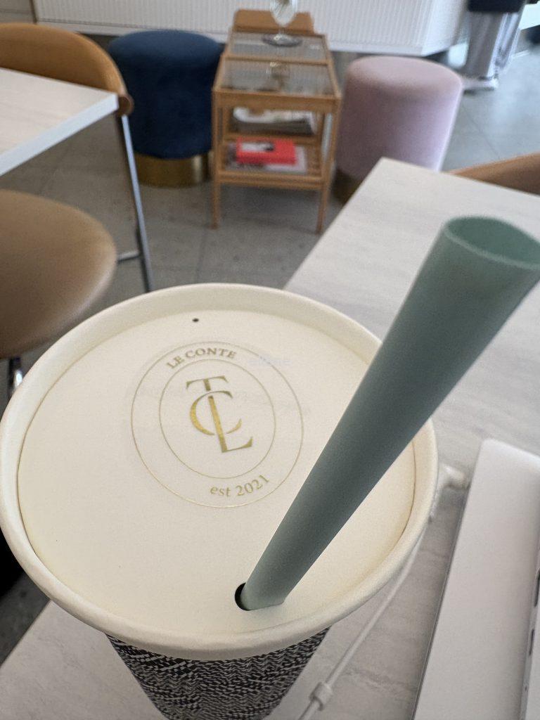 일회용 컵도 일반적이지 않고 예쁘다. 겉면이 울퉁불퉁해 손으로 잡아도 미끄럽지 않고 차가운 온도도 잘 느껴지지 않는다.