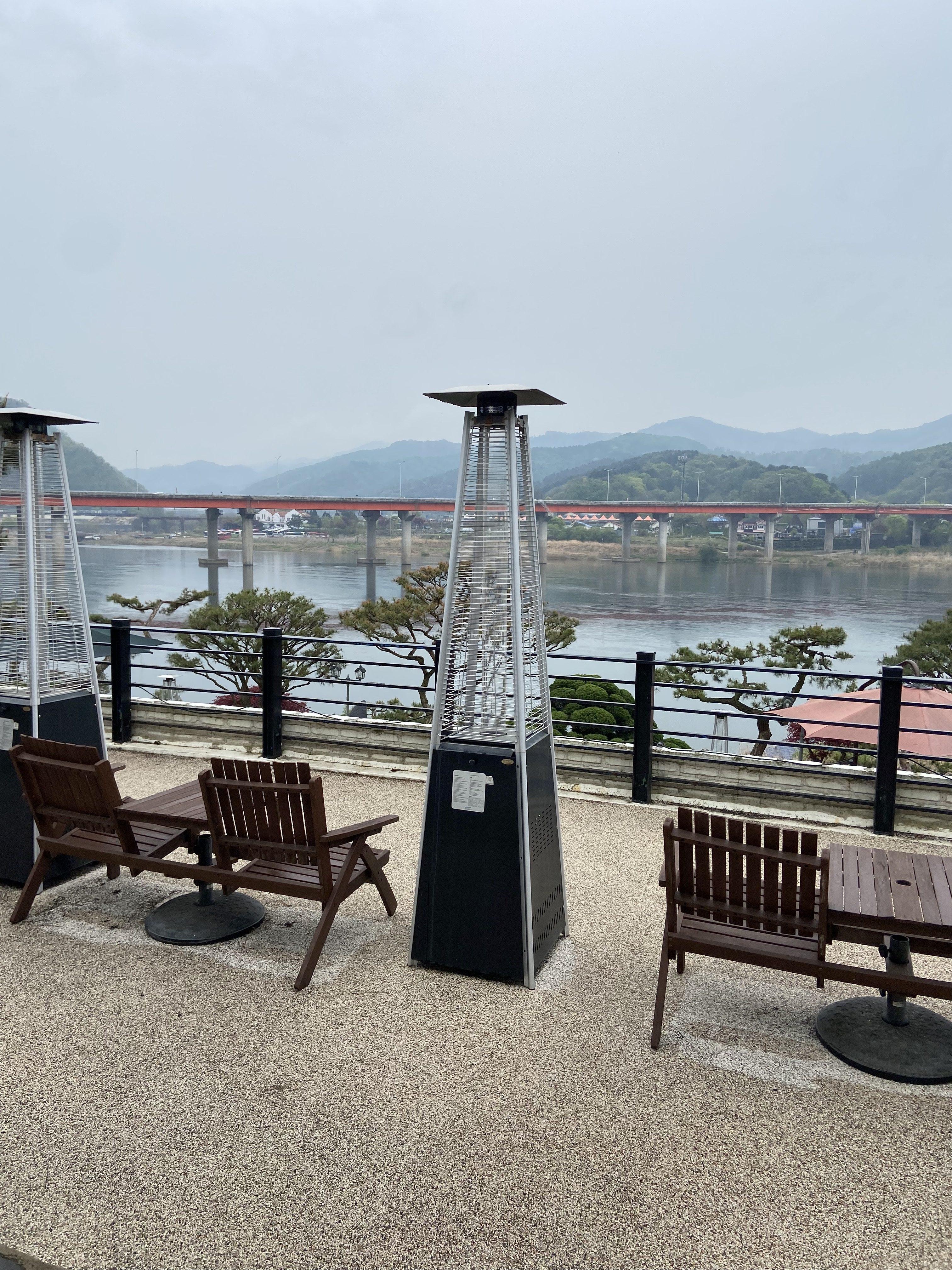 기본적으로 카페 안에 테이블이 마련되어있지만, 북한강이 보이는 카페 바깥에도 테이블이 꽤 많다.