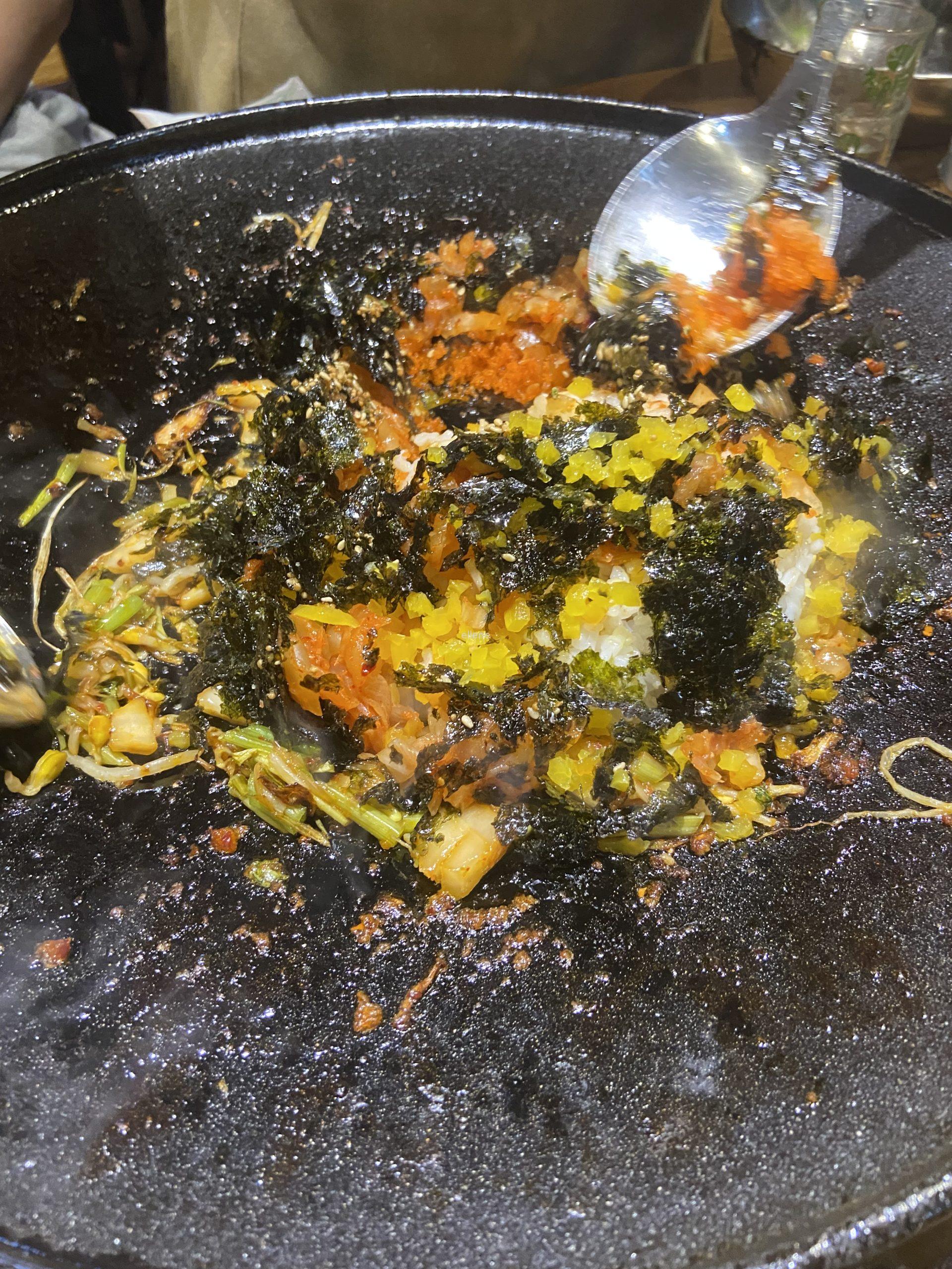 확실히 솥뚜껑에서 구워 고소한 맛이 더 깊어진 건가.