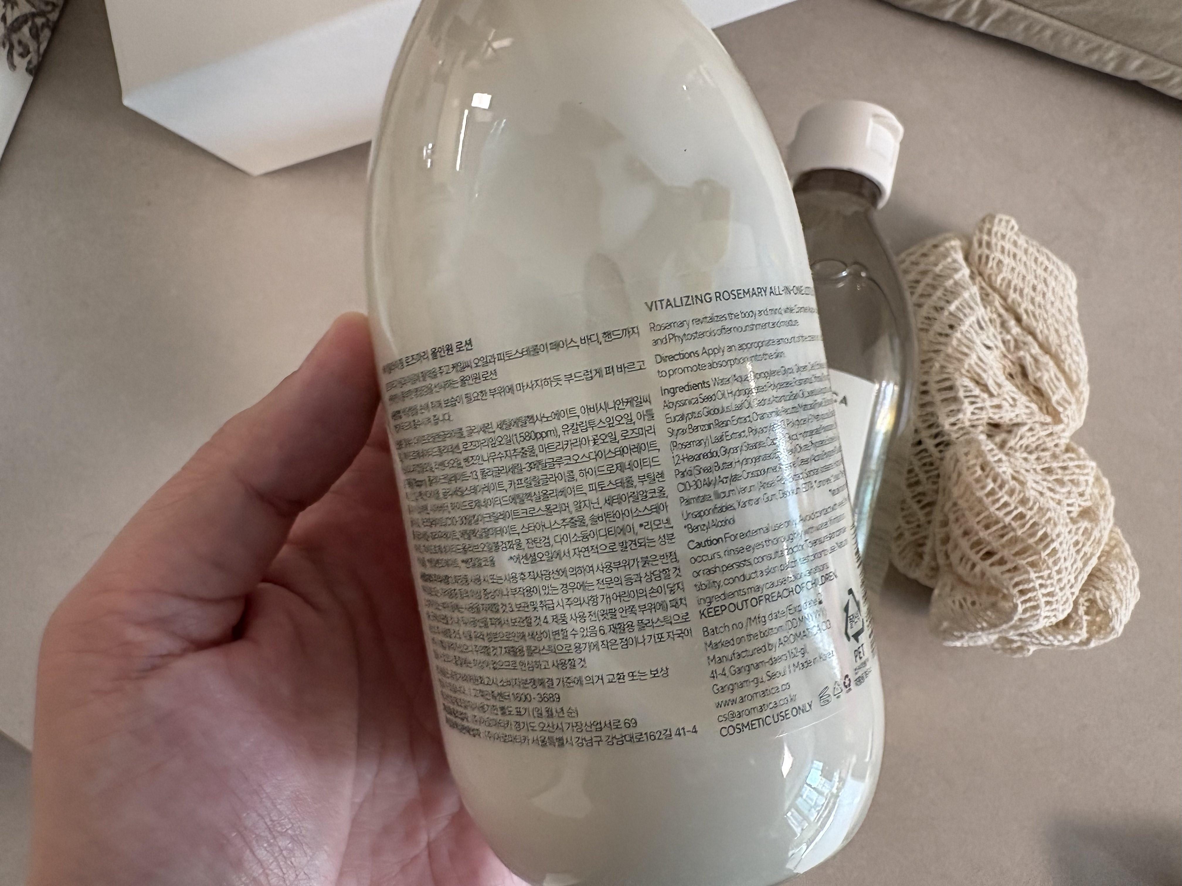 바로 아로마티카라는 브랜드의 로즈마리향 바디샤워, 바디로션 세트입니다.