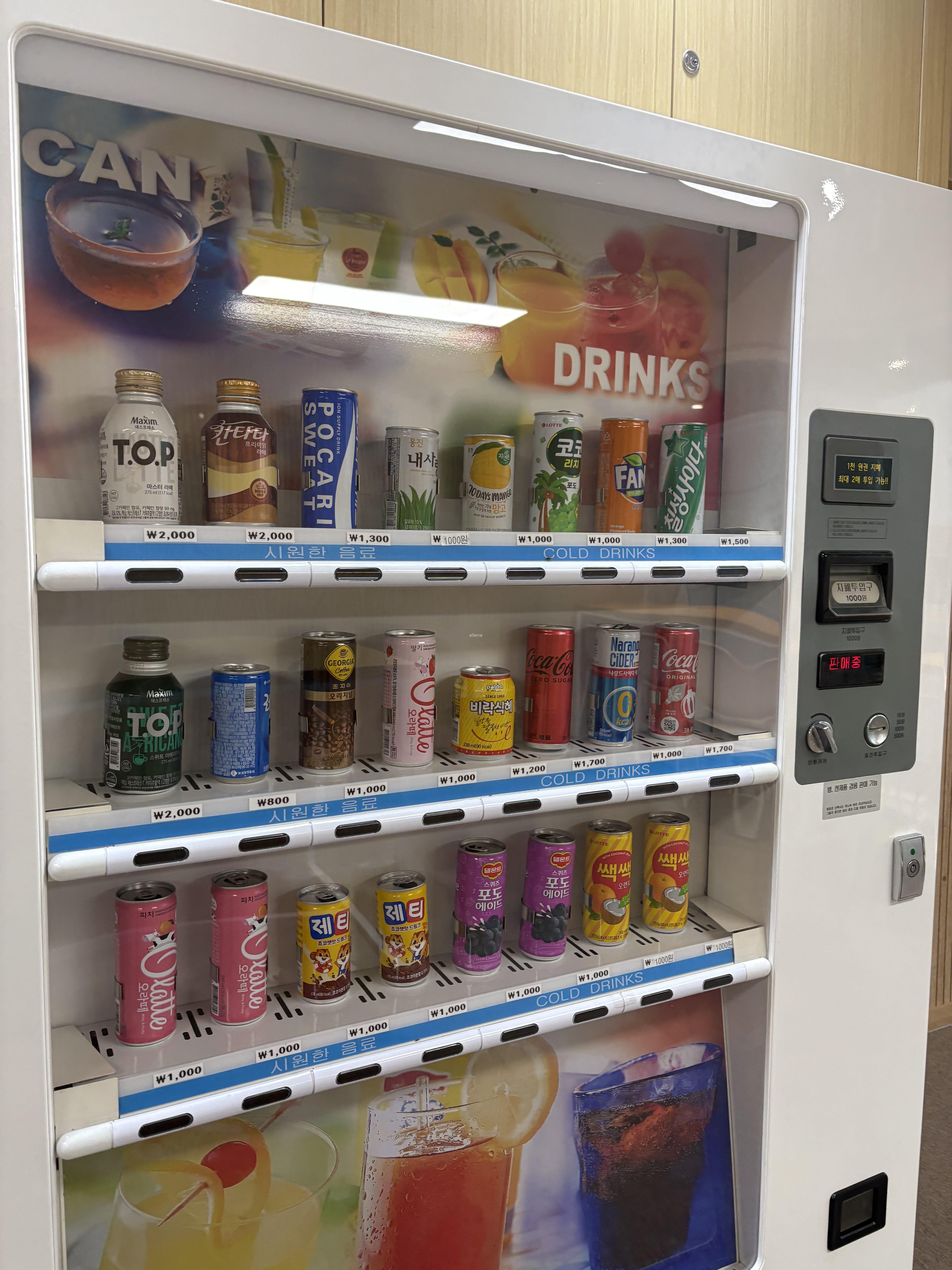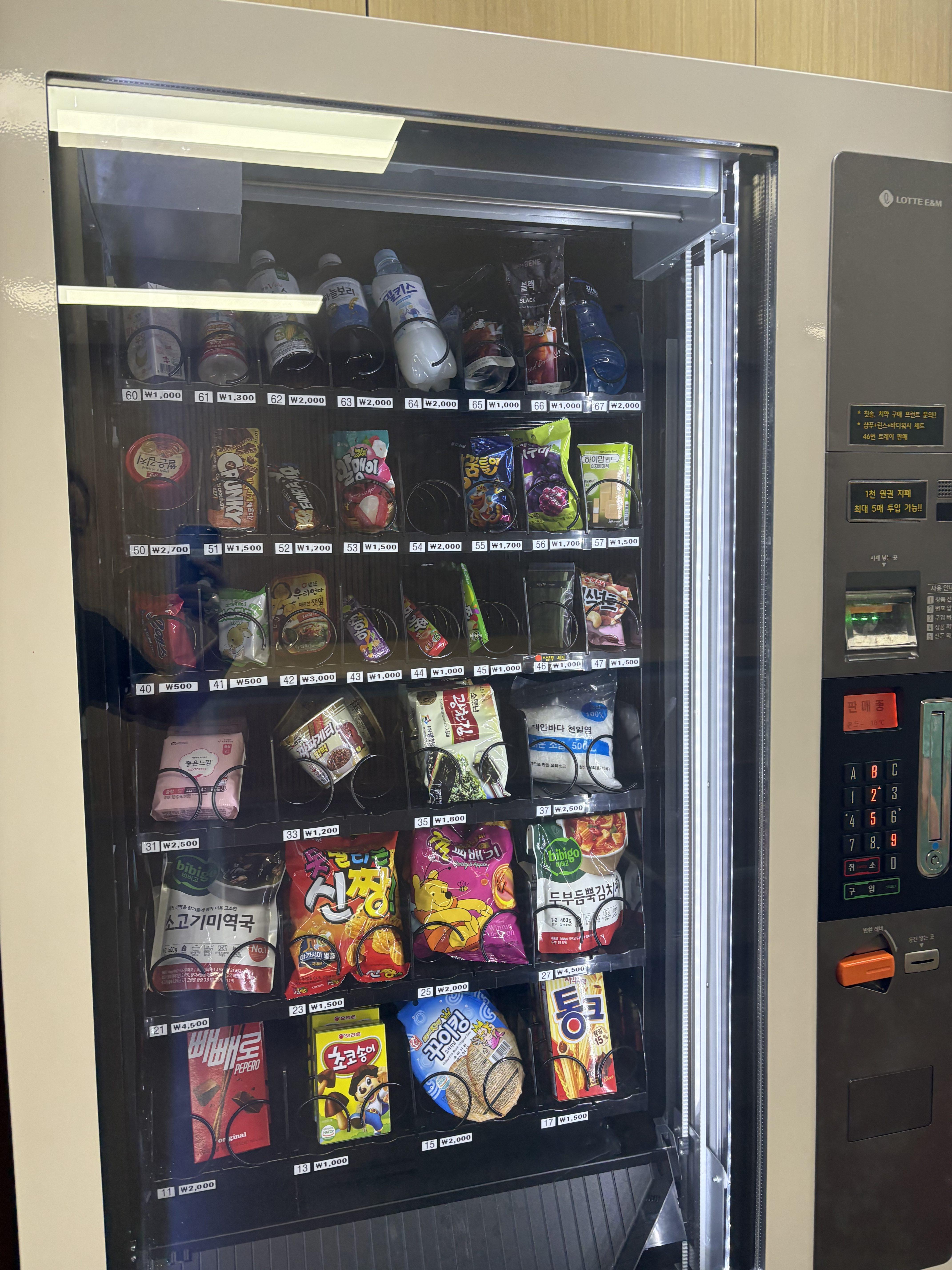 3층에는 여러 물건을 구입할 수 있는 자판기가 세 대 있다.