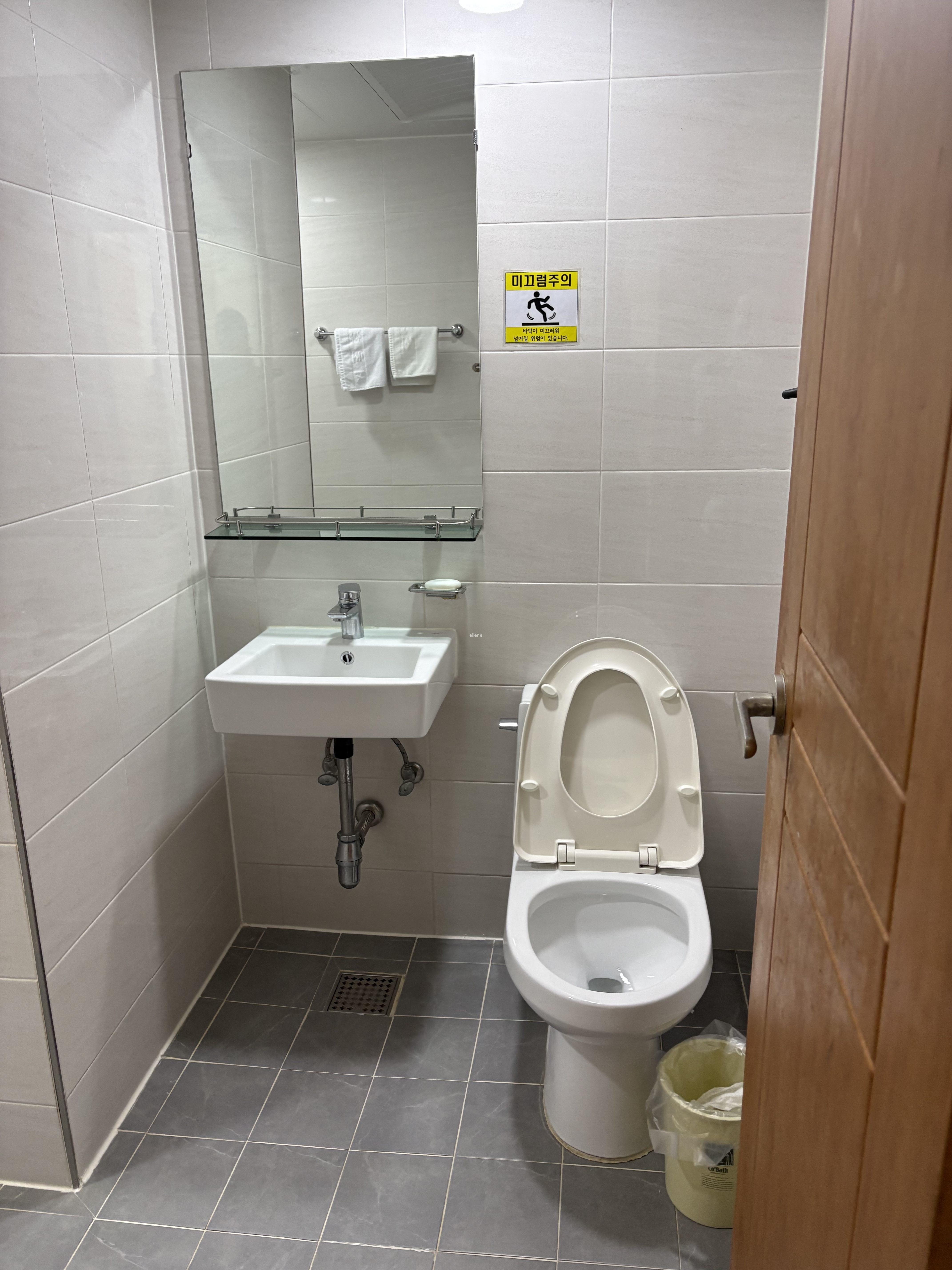 화장실은 쁘띠 사이즈. 숙박 가격이 너무나 저렴하기에 이 정도면 충분하다고 생각한다.