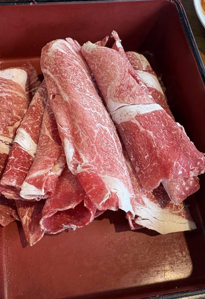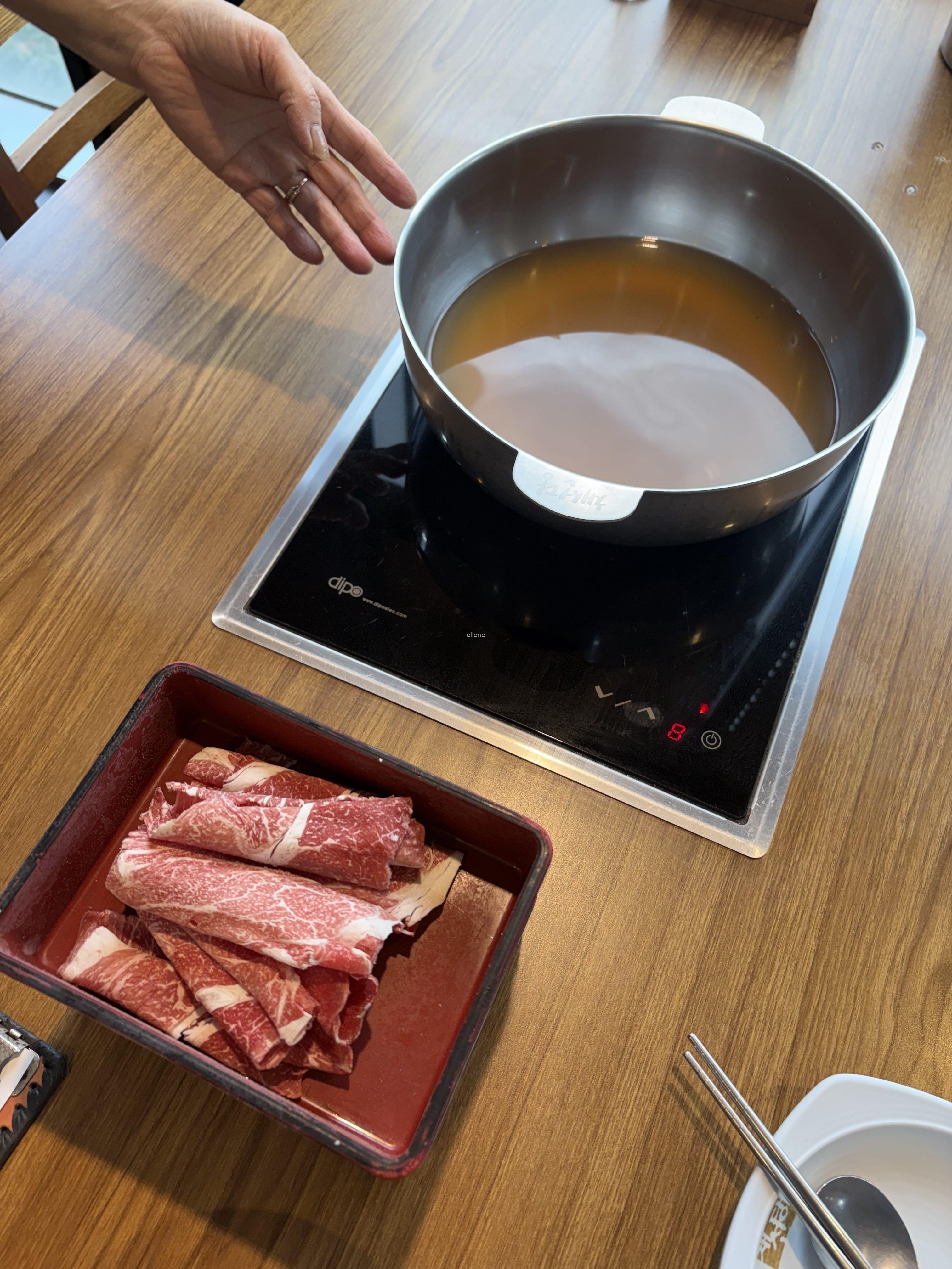 주문하자마자 자리에 육수와 고기가 놓였다.