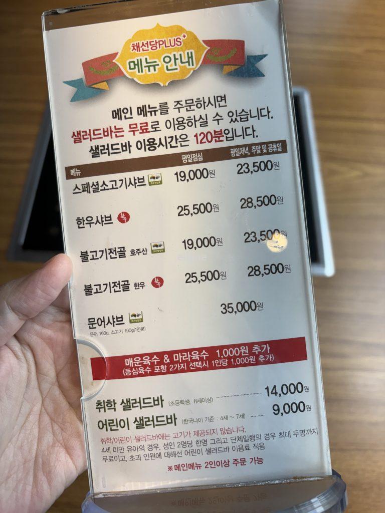 채선당플러스 메뉴 / 이용 가격