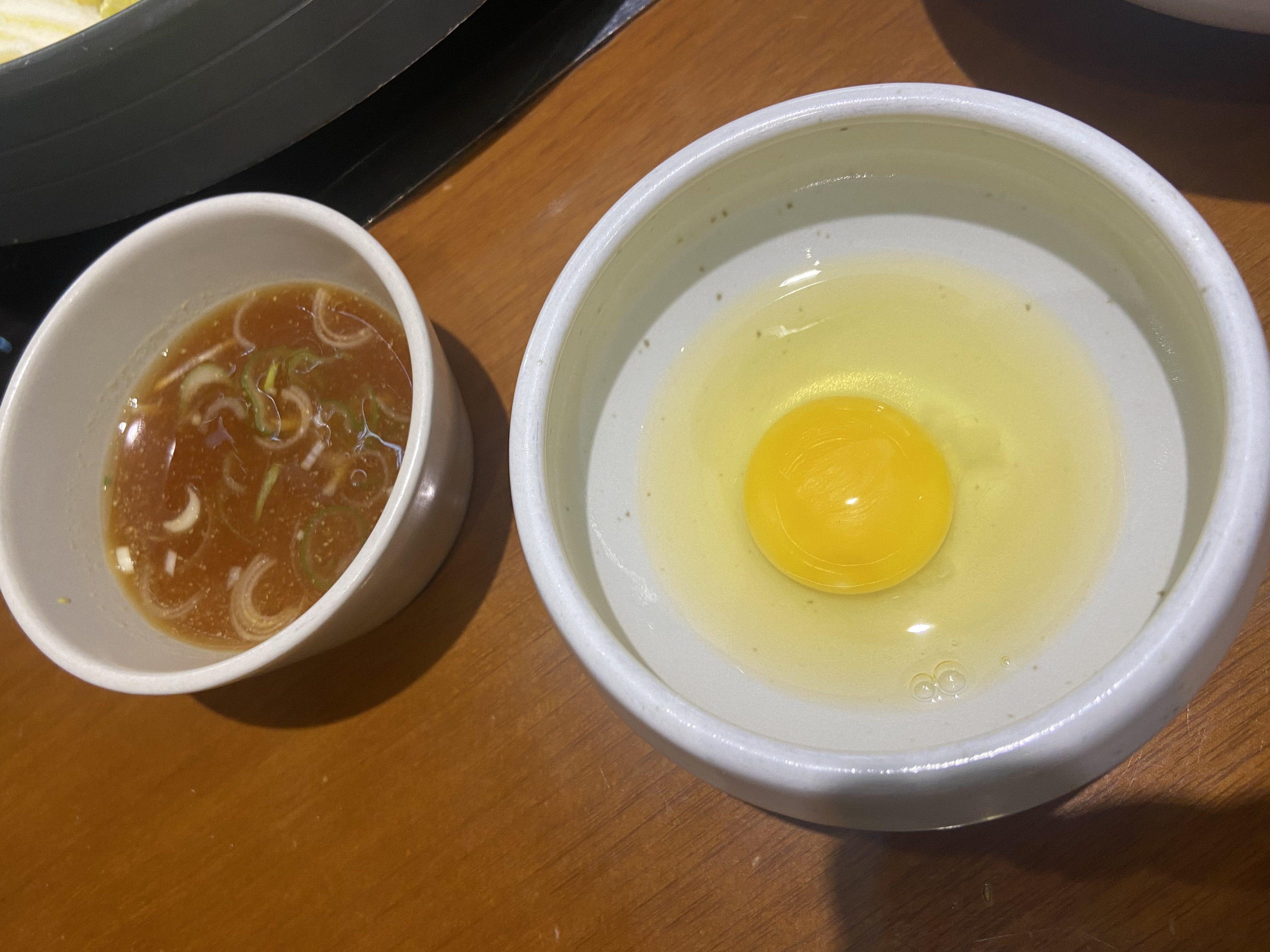 스키야키의 하이라이트인 달걀, 소고기도 같이 가져다주셨는데, 특히 소고기는 육안으로 봐도 아주 질이 좋아 먹음직스러웠다. 저렴한 샤브샤브집에서 판매하는 언 고기가 아니다. 정말 생고기다.
