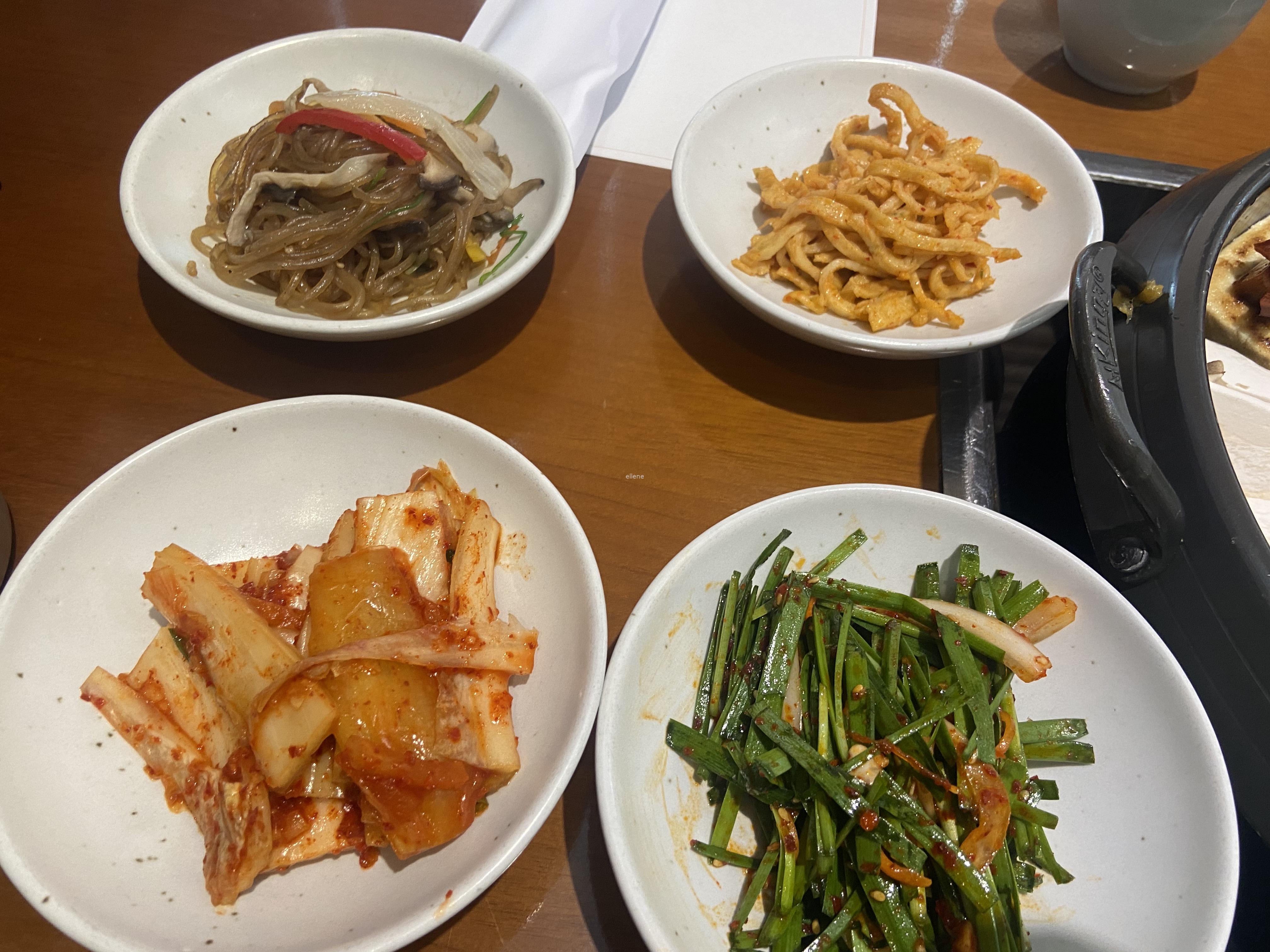우리는 창가 쪽 부드러운 좌석에 아기를 앉혔다. 직원 분이 아기의자를 놓아주셨지만 아기가 몇 분 앉아있다가 지루하다는 표현을 적극적으로 하는 바람에 아기를 꺼내 신랑 옆에 앉힘. 테이블에 밑반찬이 깔리자, 아기의 눈은 돌아가기 시작했다. 이것 저것 먹여달라는 손짓을 하는데 정작 밑반찬들은 간이 세고 크기가 커서 아기에게 줄 수 있는 것이 하나도 없더라. 이 때부터 반찬으로 향하는 아기의 손짓을 막는 반복적인 작업이 시작됐다. 역시 푸드코트가 답이었나!