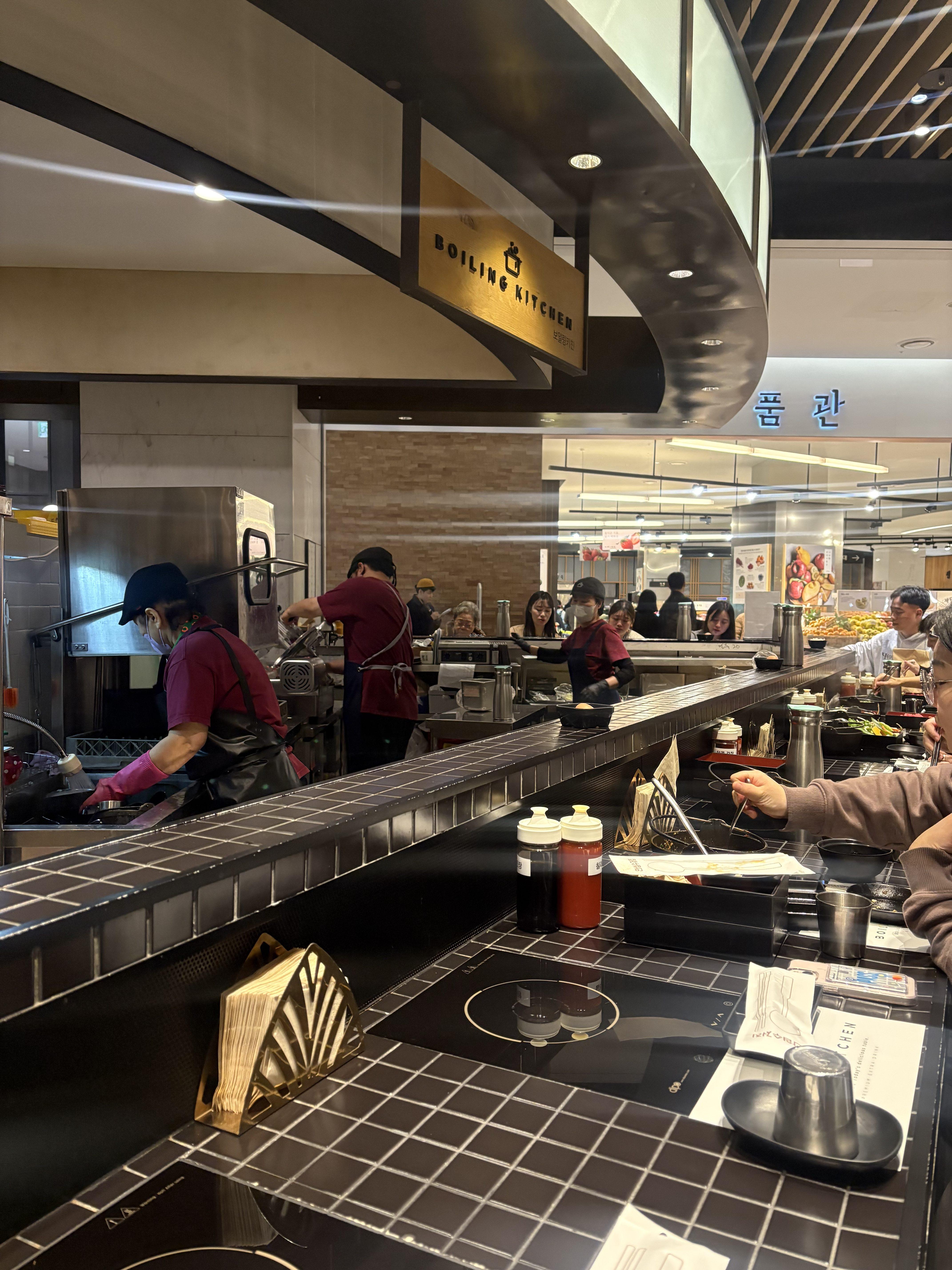 보일링키친은 판교 현대백화점 지하 1층 식당가 한가운데에 있어요.