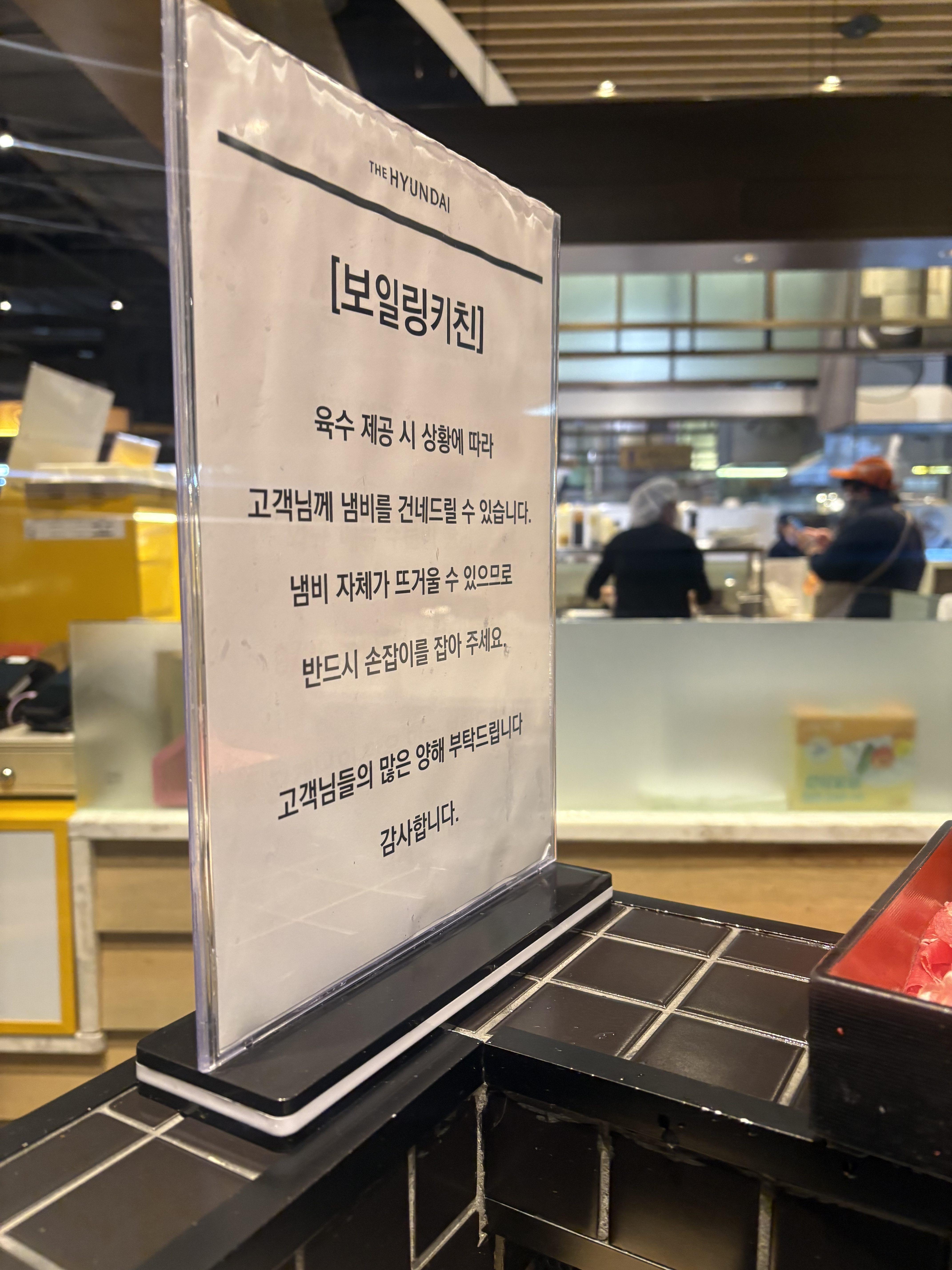 얼마 전 제가 방문한 최고의 혼밥 장소는 바로 현대백화점 지하 1층에 위치한 <보일링키친>이에요.