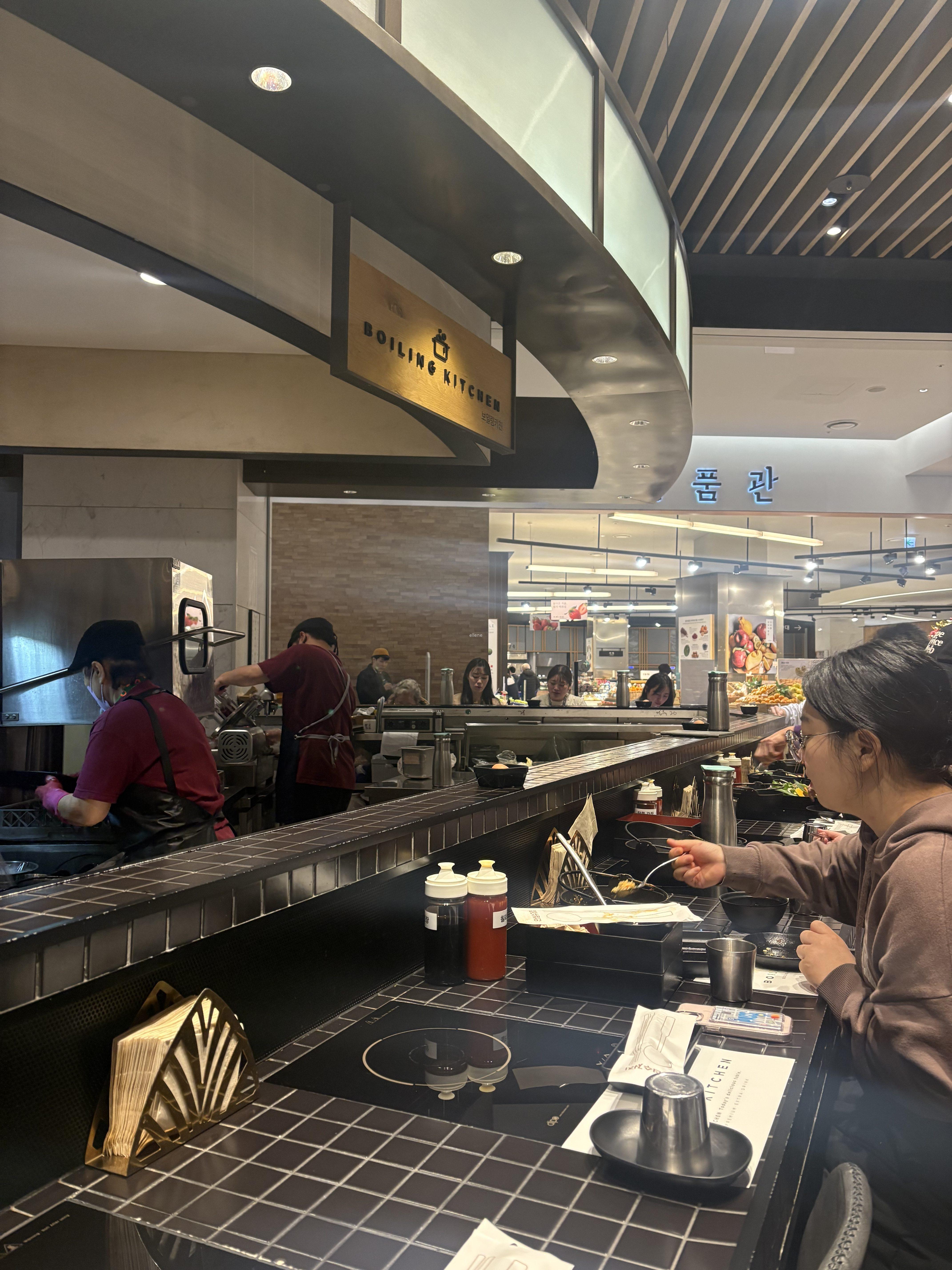 보일링키친은 판교 현대백화점 지하 1층 식당가 한가운데에 있어요.