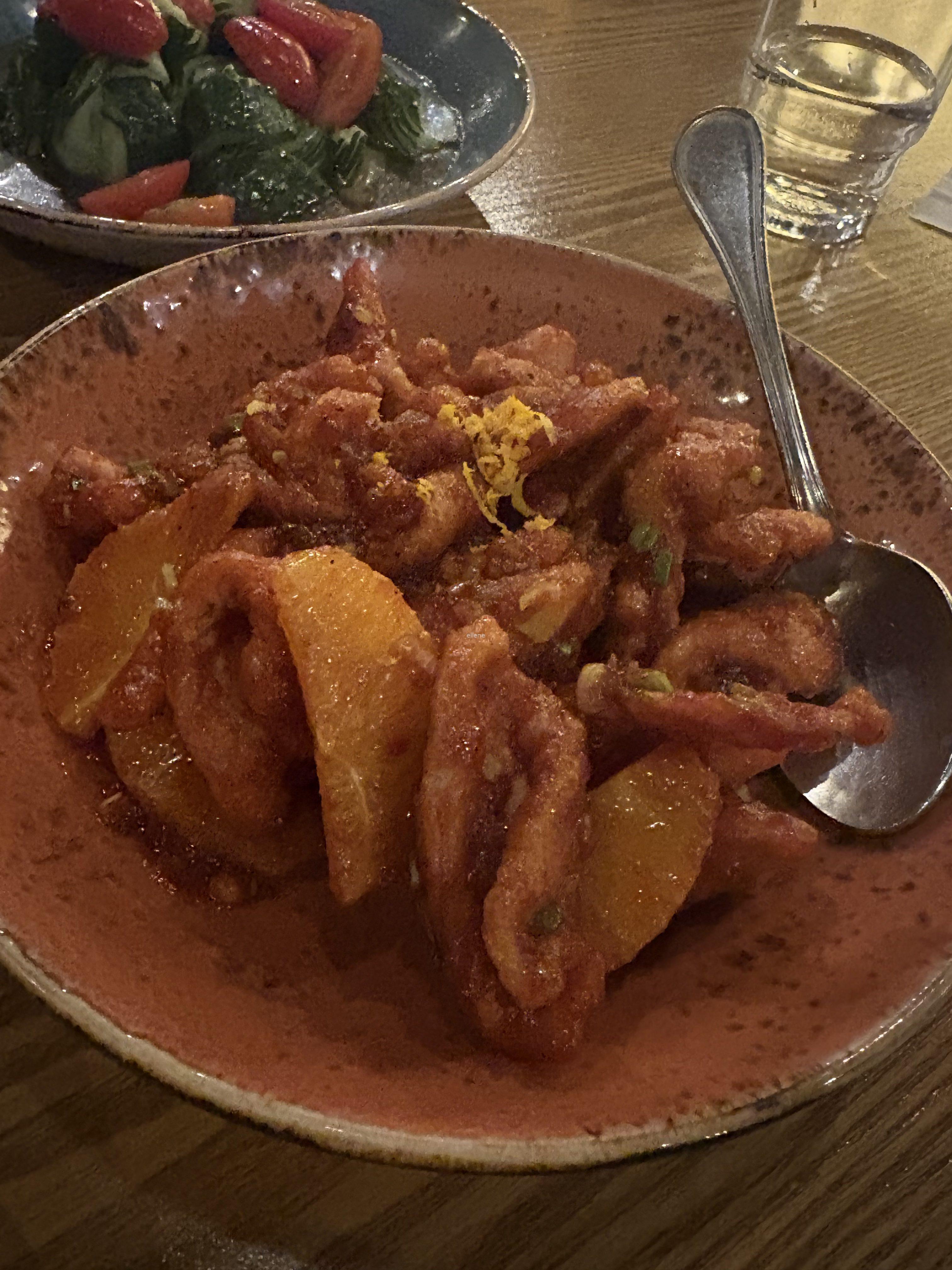 신기한 게 피에프창 오렌지치킨에는 진짜 오렌지가 들어있더라고요. 저는 미국에서도 이렇게 진짜 오렌지가 들어있는 메뉴는 먹어본 적이 없어서 너무 신기했어요.