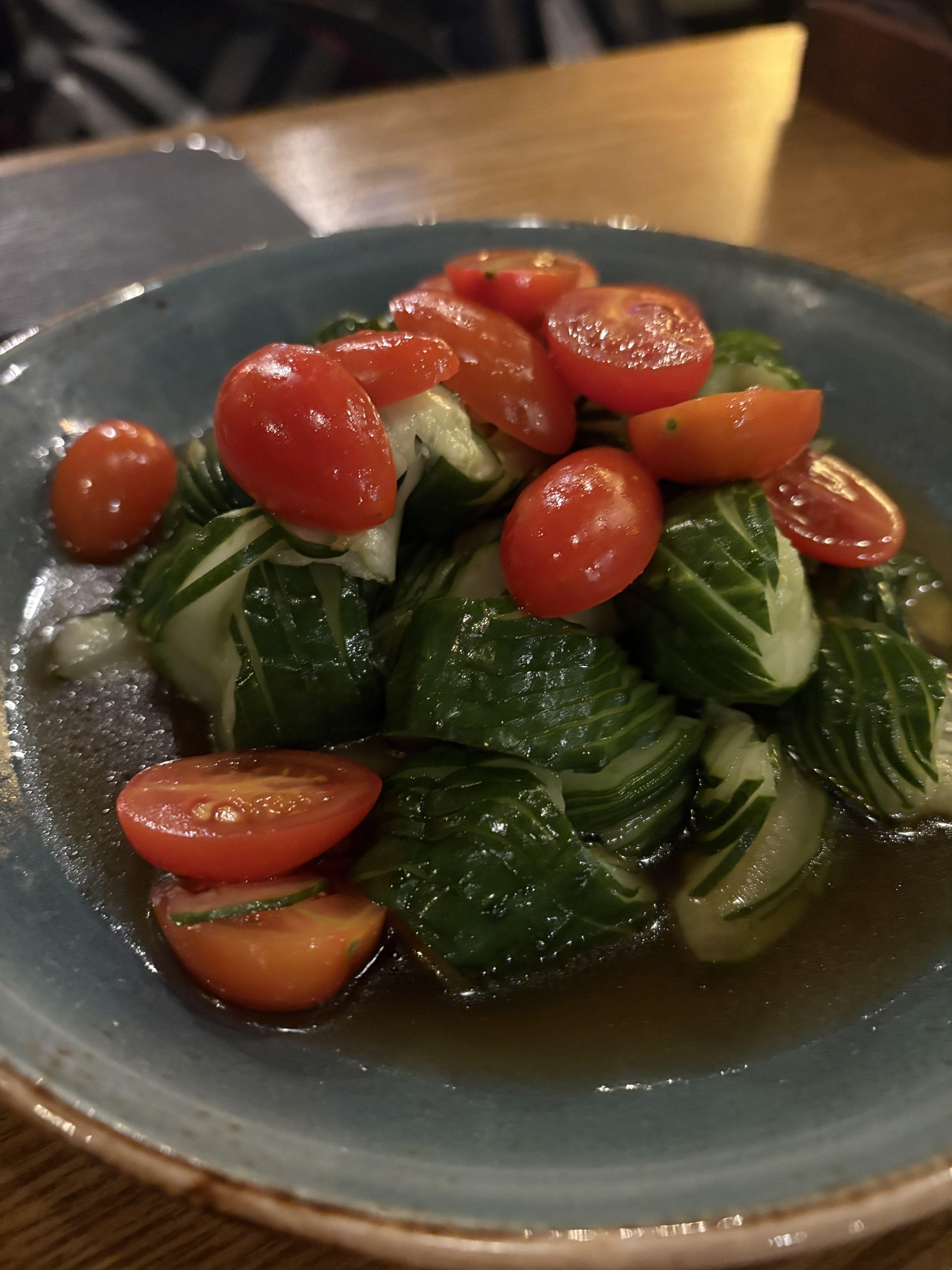 오이 무침은 음식이 행여나 좀 느끼하지 않을까 싶어서 주문한 메뉴예요. 우리 부부는 둘다 오이를 별로 좋아하지 않는데, 이 메뉴는 상큼하고 맛있었어요. 야채 없는 다른 메뉴를 먹다가 오이 무침을 먹으면 입이 상큼해지는 느낌이더라고요.