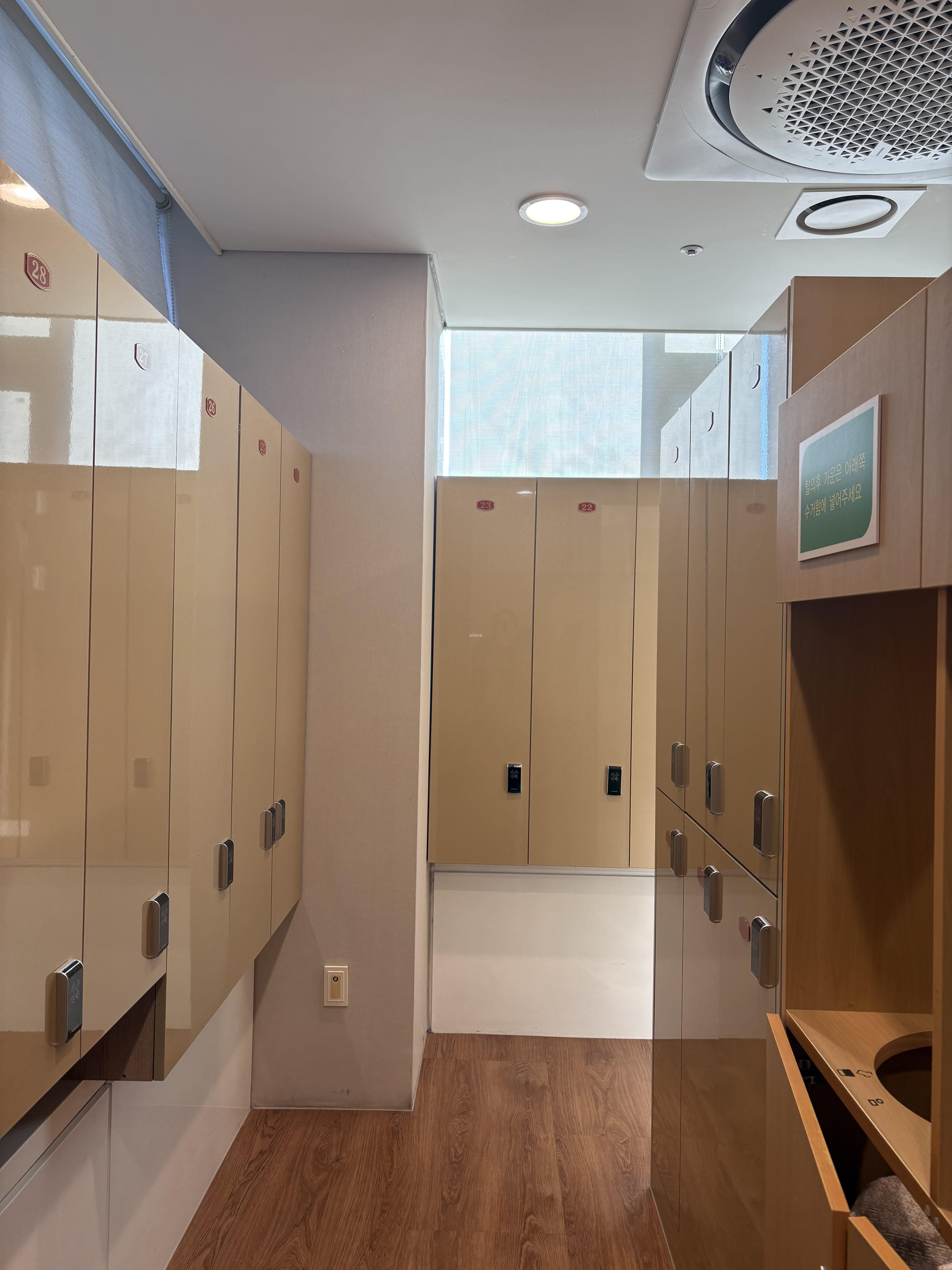 여자 탈의실. 조금 늦게 가서 그런지 탈의실에 사람이 아무도 없어 처음으로 사진을 찍어봤다.
