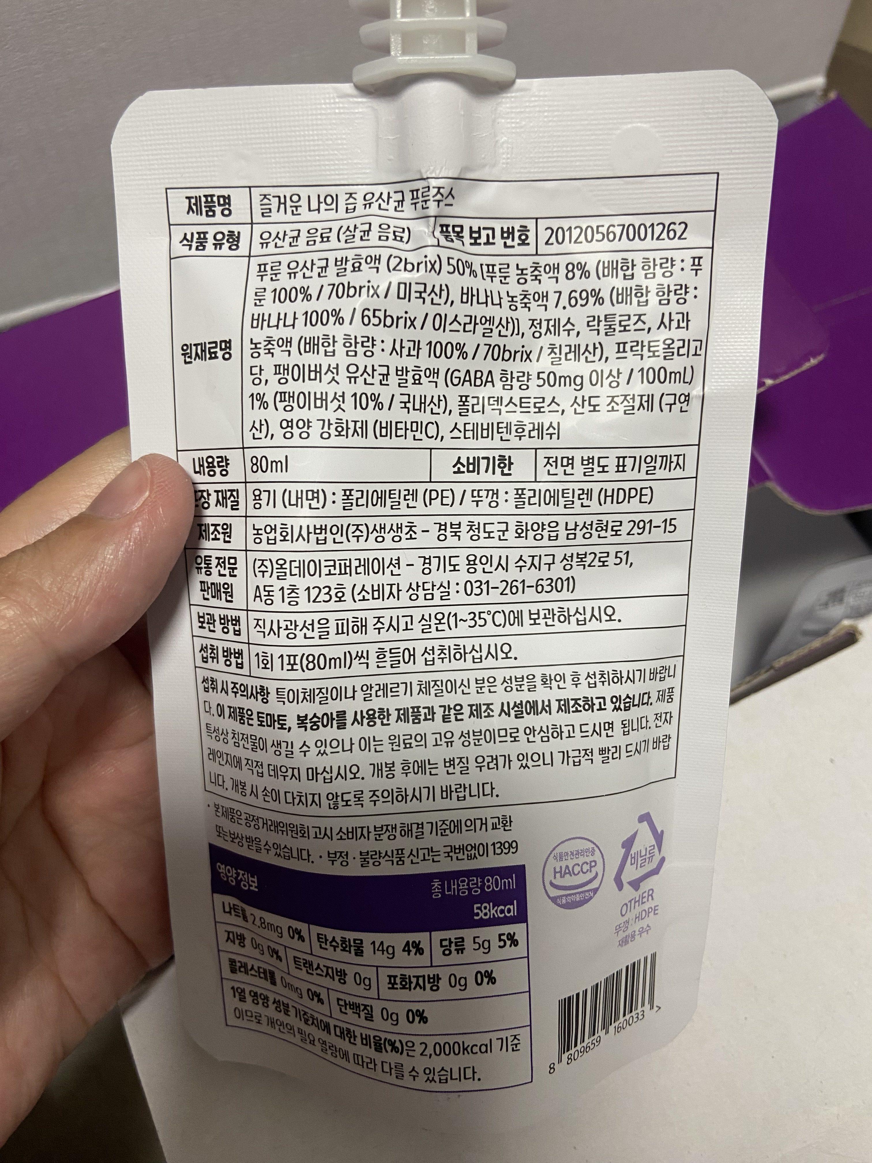 하지만 나는 계속 먹이면 좀 어때, 라는 생각으로 <즐거운 나의즙> 푸른주스 한 박스를 구입했다.