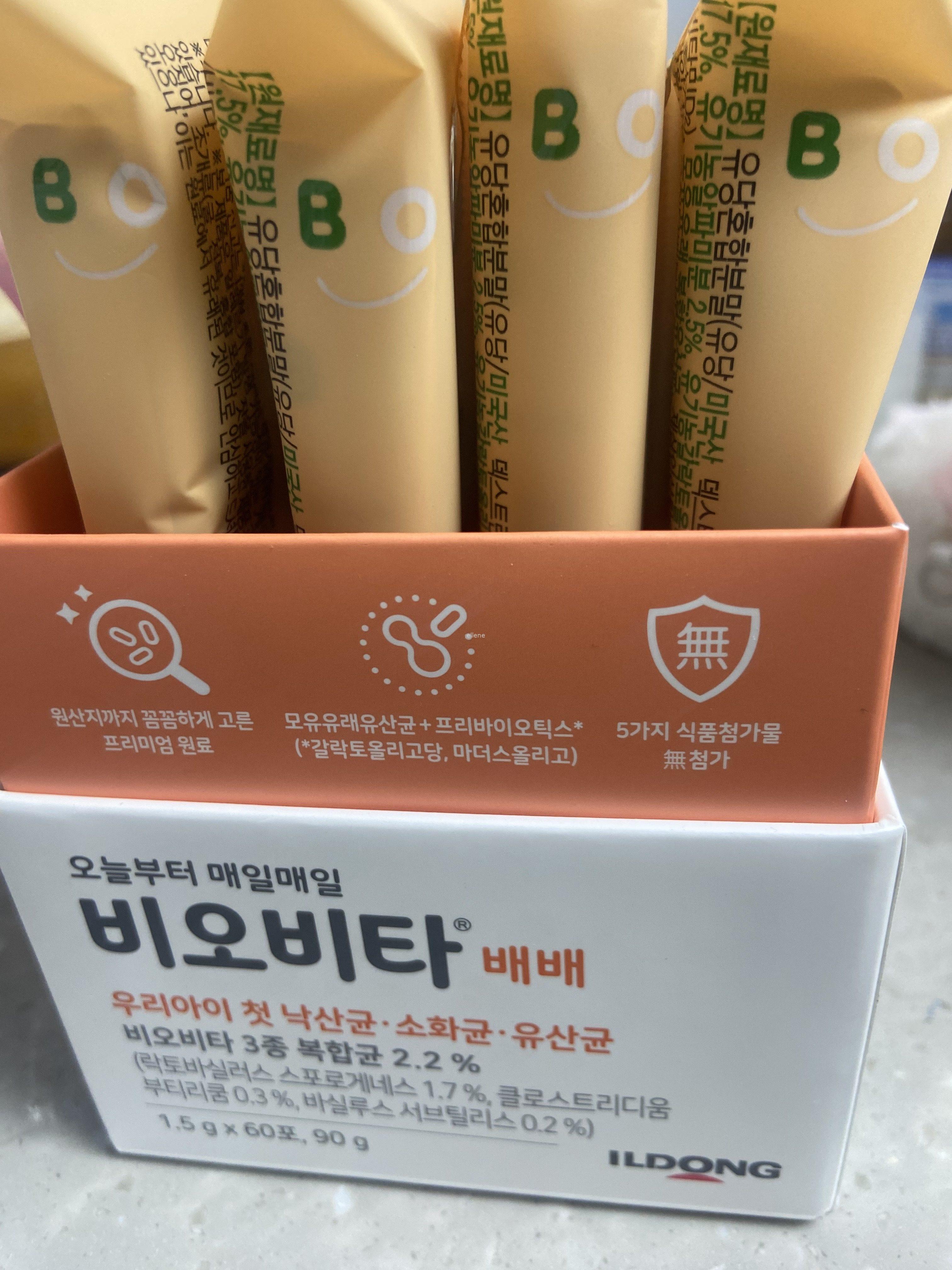 우리는 일동제약에서 나온 <비오비타 배배>를 쿠팡으로 주문해서 하루에 한 번씩 우유에 타서 먹인다.