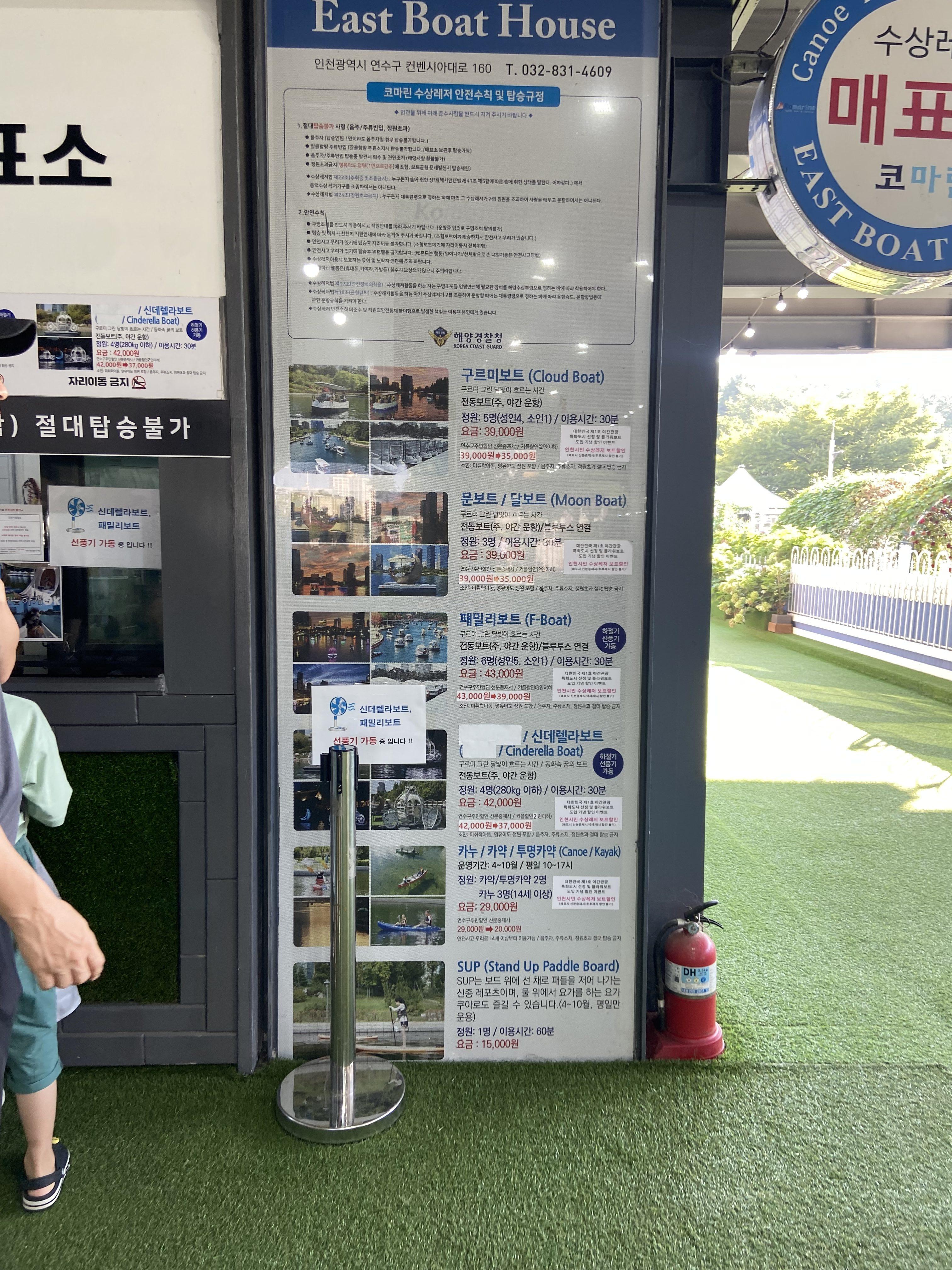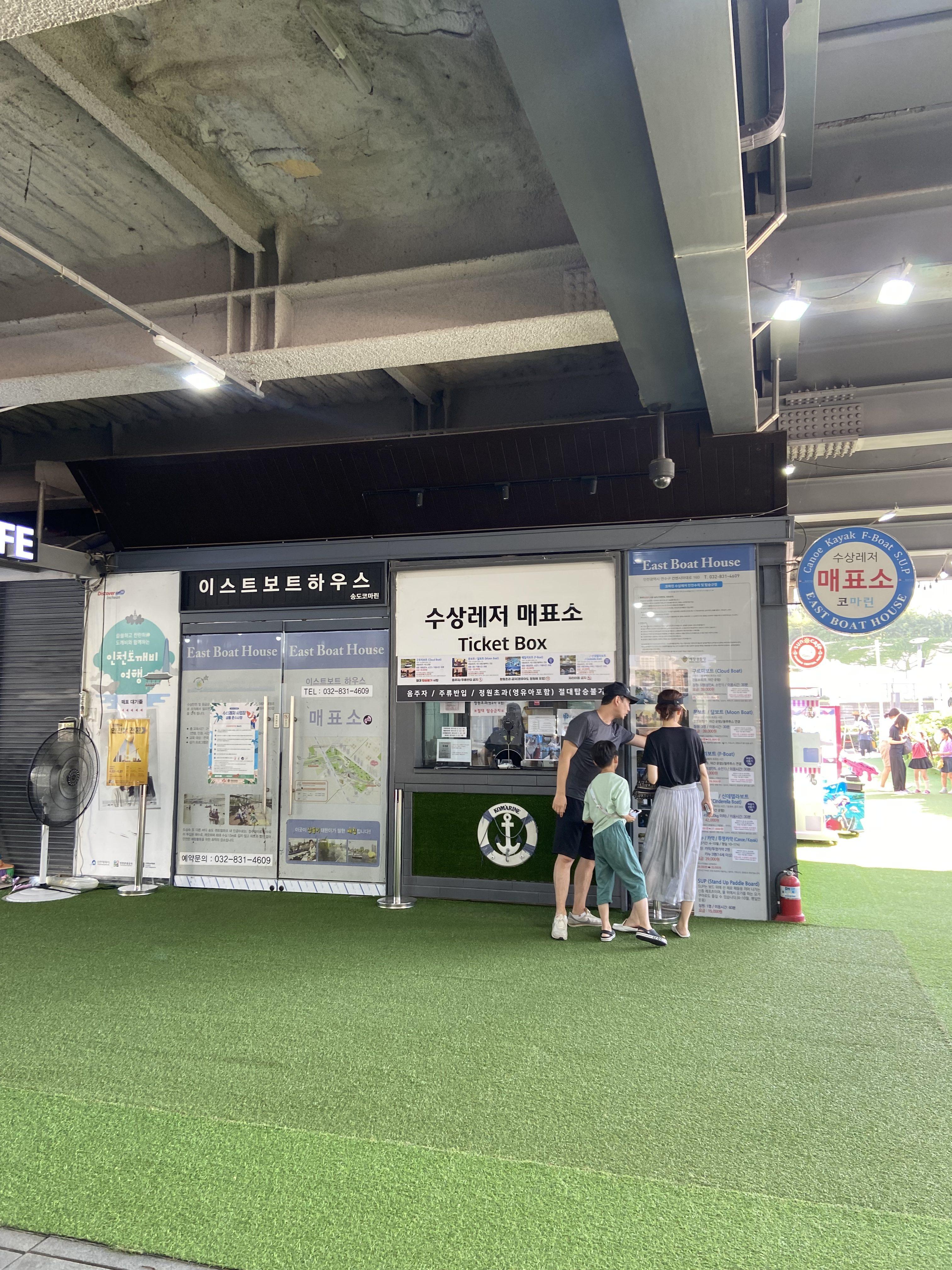 <수상레저 매표소>를 찾아가시면 보트 종류와 금액을 확인하고 티켓도 구매하실 수 있어요.