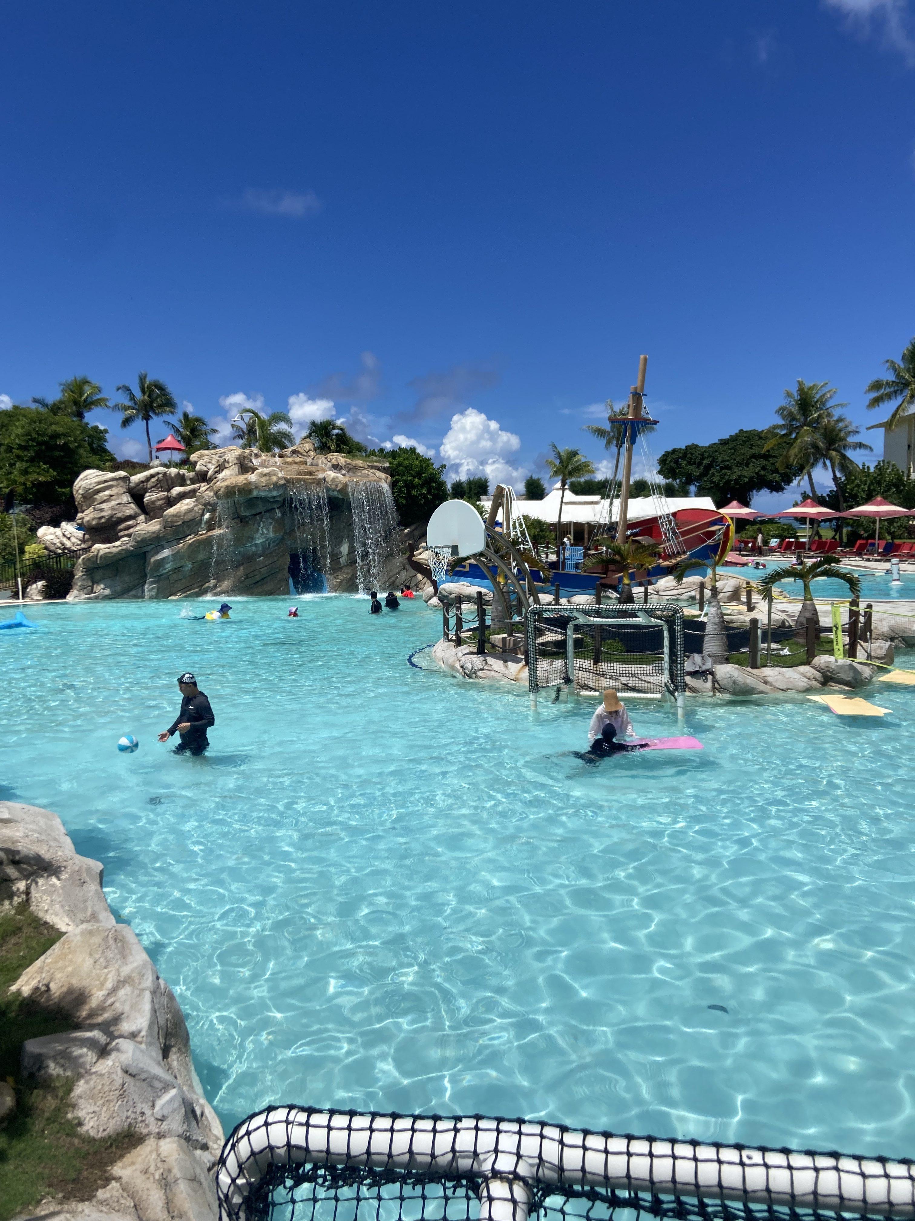 전체적으로 물이 얕지만 수심이 살짝 깊은 곳도 있고 농구대, 테니스 매트 등이 설치되어있어 어른들도 재밌게 놀 수 있답니다.