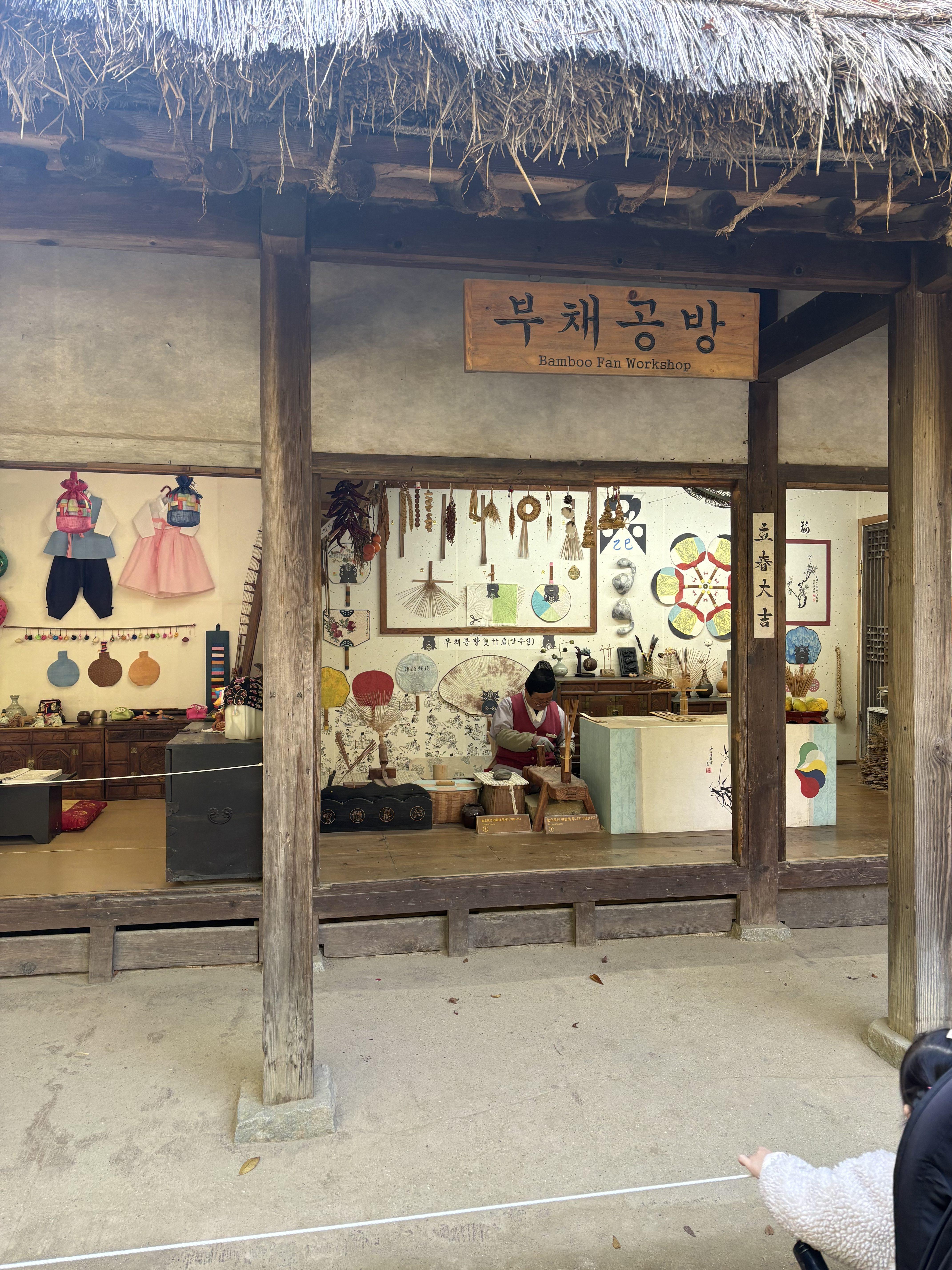 이 날도 우리는 짚신이나 모자를 만드는 모습을 구경했다. 아이가 신기해하며 보는 모습이 참 귀여웠다.