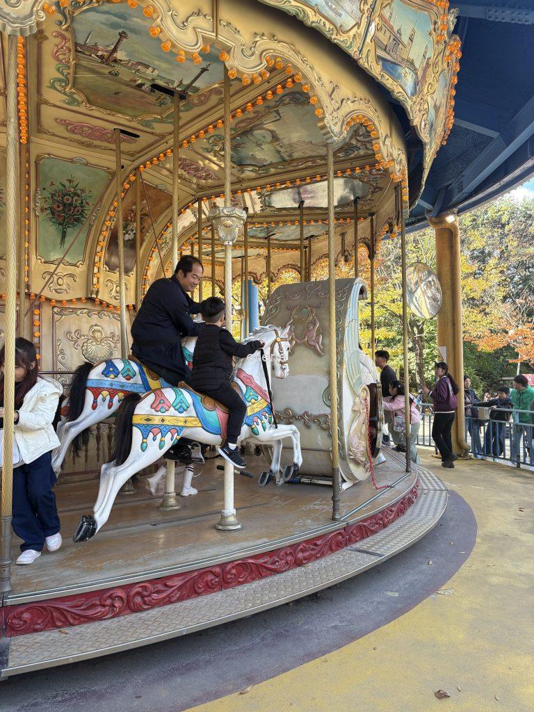 회전목마는 90cm 미만인 아이들도 마차에 앉거나, 엄마아빠와 동승한다는 전제 하에 탑승할 수 있다.