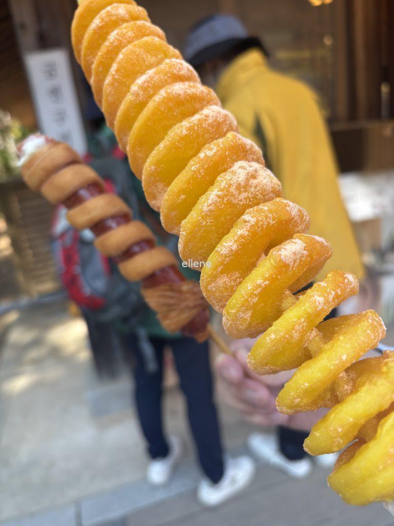 들어가자마자 보이는 매점에서 핫도그랑 회오리 감자 하나씩 겟! 입장부터 신난다. 🙂