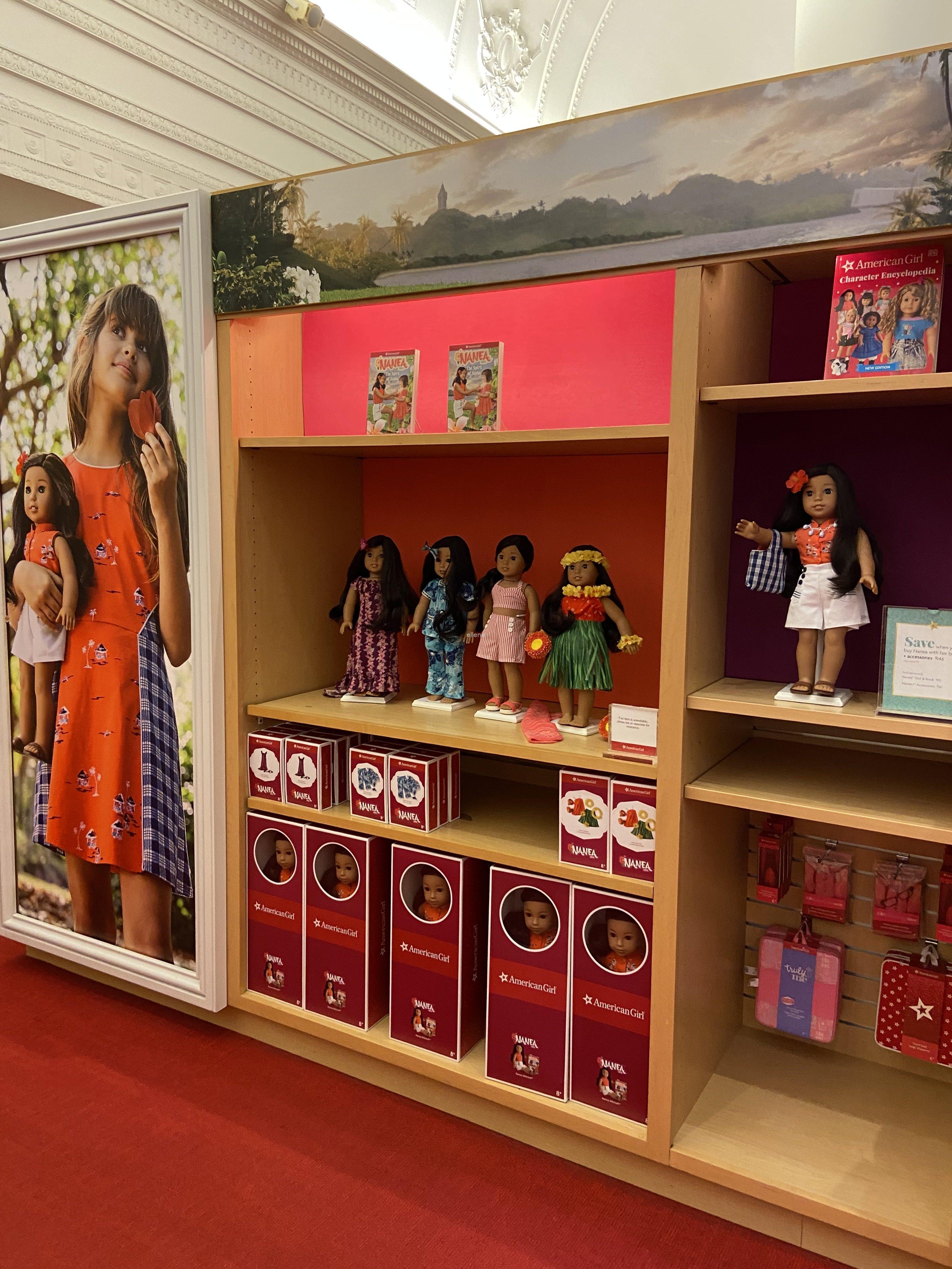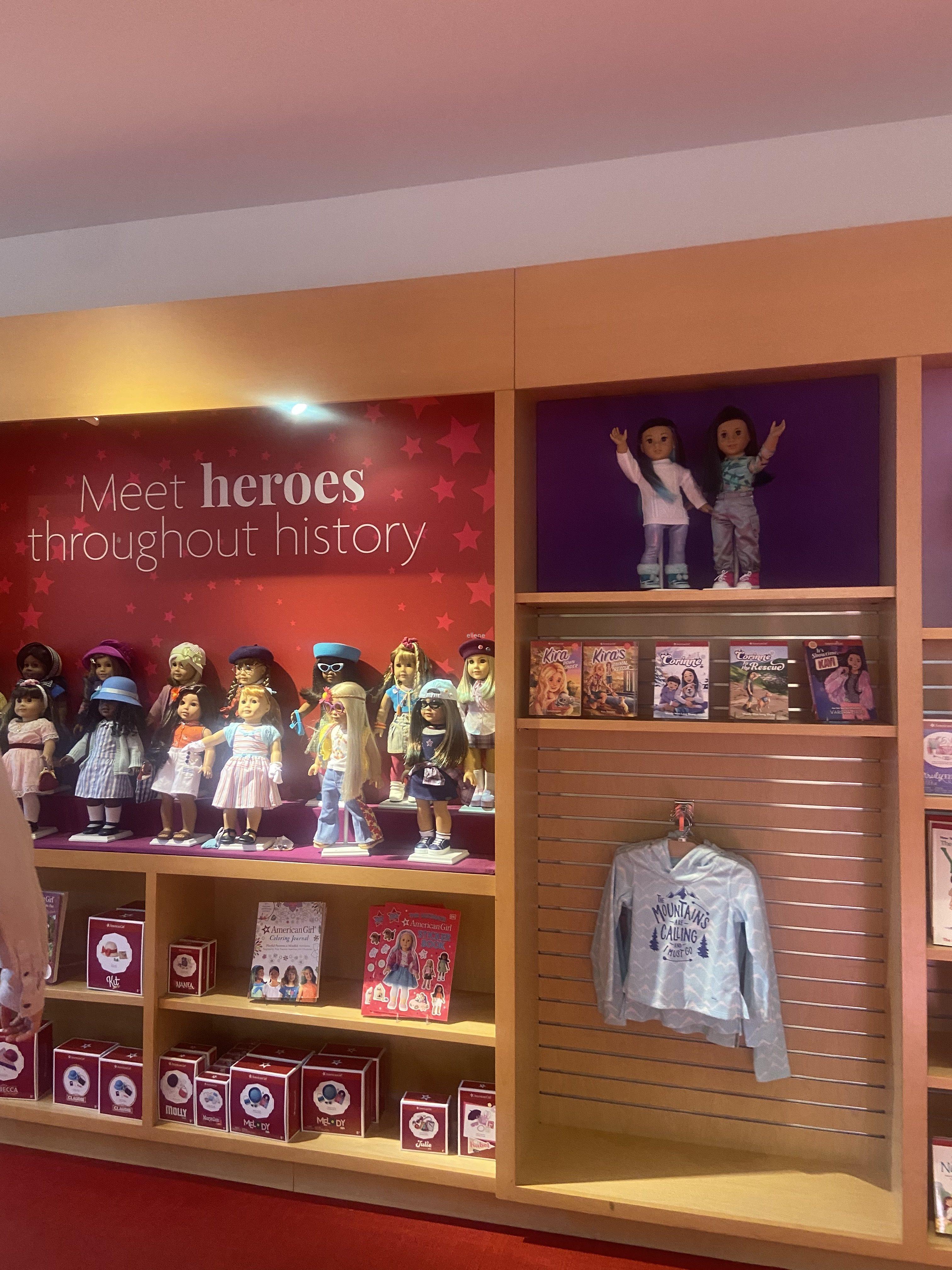 아메리칸걸의 주요 상품은 단연 인형이다. 그 옛날 가지고 놀던 주주인형이나, 요즘까지도 핫한 바비인형과는 생김새가 다른 귀엽고 건강미 넘쳐보이는 인형이 끝없이 진열되어있다. 인형의 국적도 다양하고 옷을 입은 컨셉이나 들고 있는 소품도 다 다르다. 각 나라의 전통의상을 입은 인형부터, 테니스를 치는 인형, 강아지를 키우는 인형, 공부하는 인형, 여행하는 인형 등등. 아메리칸걸 인형에 한 번 맛들리면 끝없이 구매할 것 같다. 온갖 옵션이 여기 다 있다.