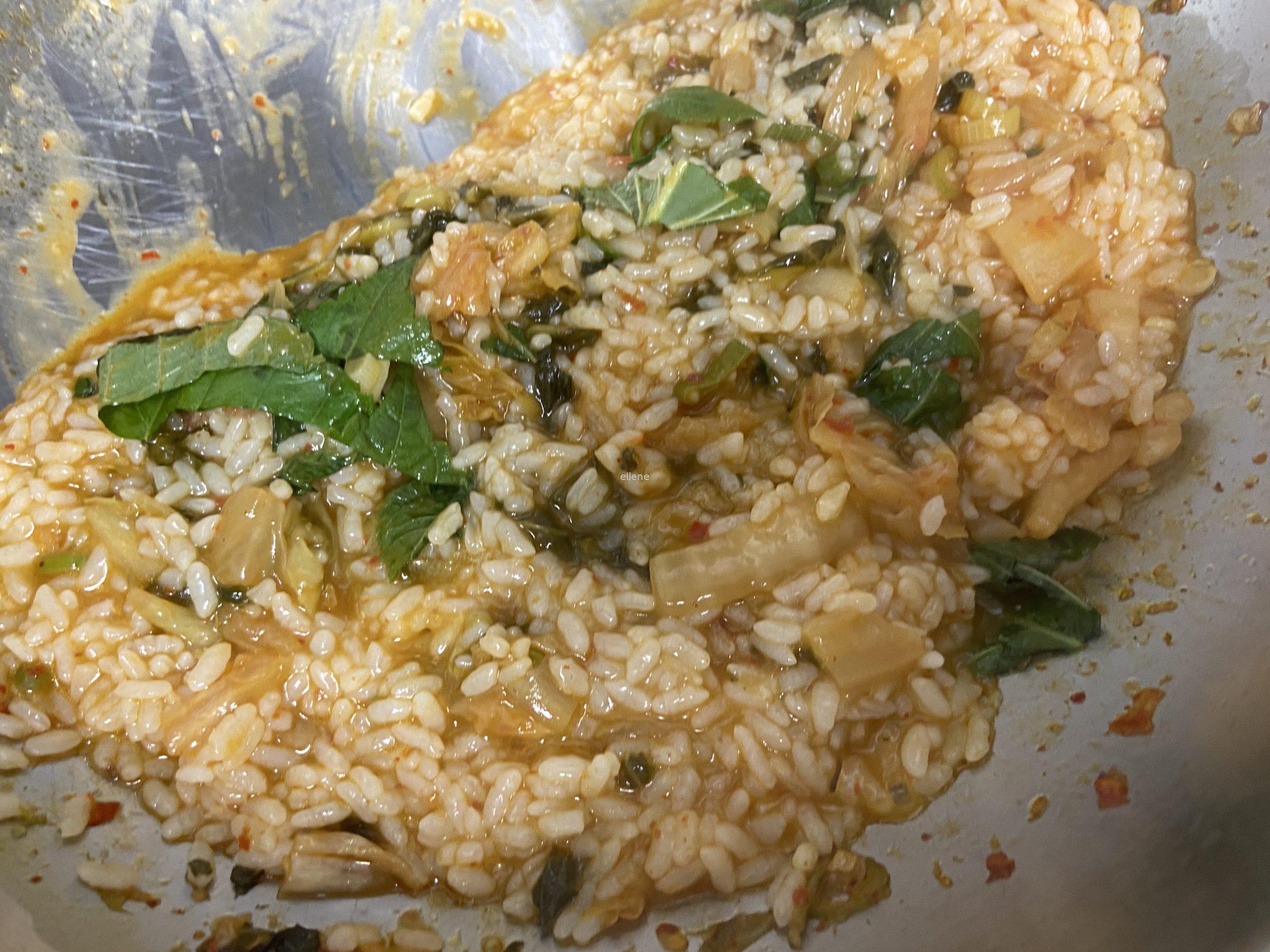 강불에 열심히 볶자, 드디어 K볶음밥이 완성됐다. 국물맛이 촘촘하게 배어있으면서 식감까지 완벽한 후식 볶음밥!