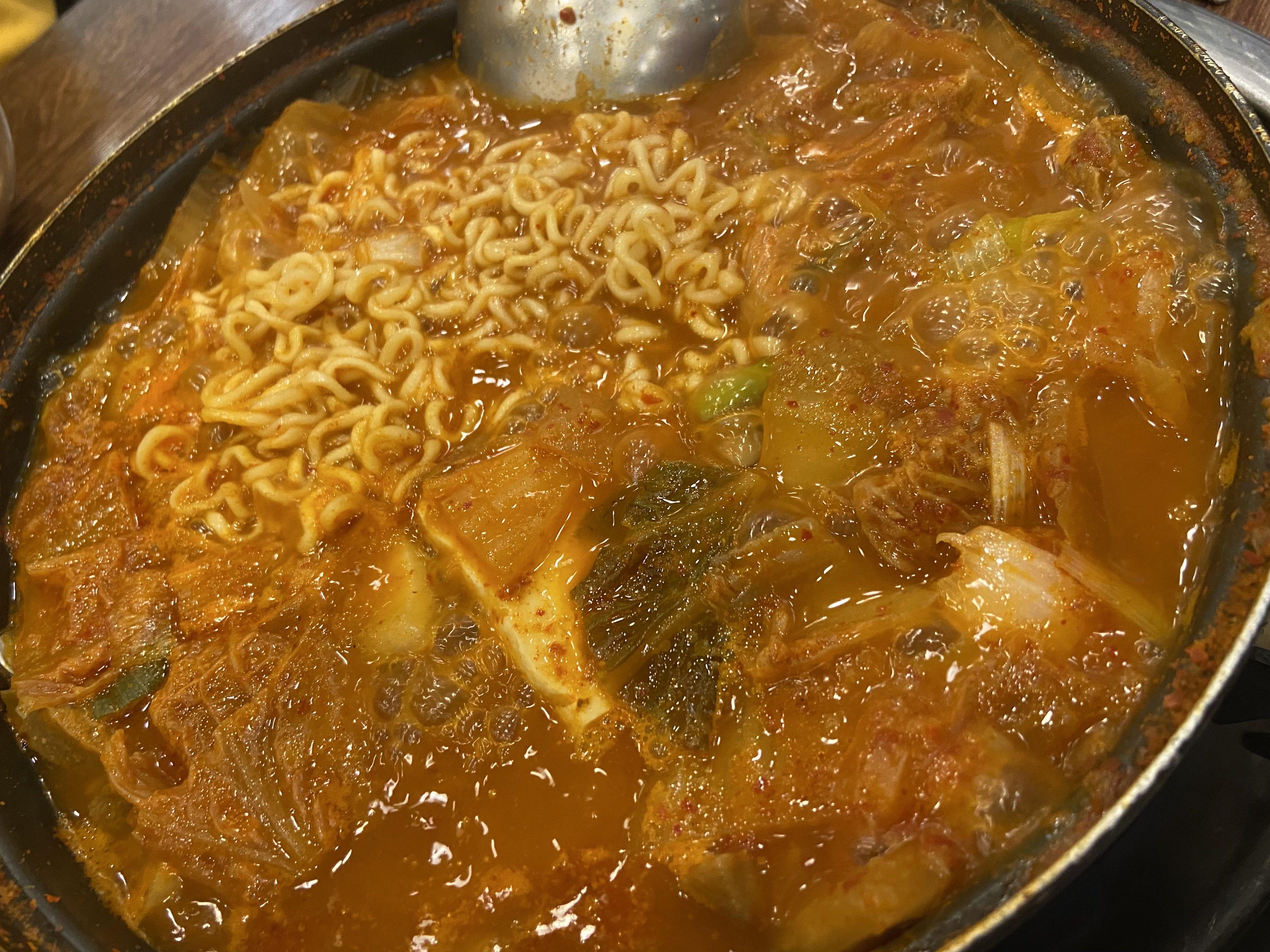 우리가 방문한 시간엔 한두테이블 정도만 차있고 가게도 조용했다. 우리는 빈 테이블에 앉아 김치찌개 2인분과 계란말이를 주문했다.