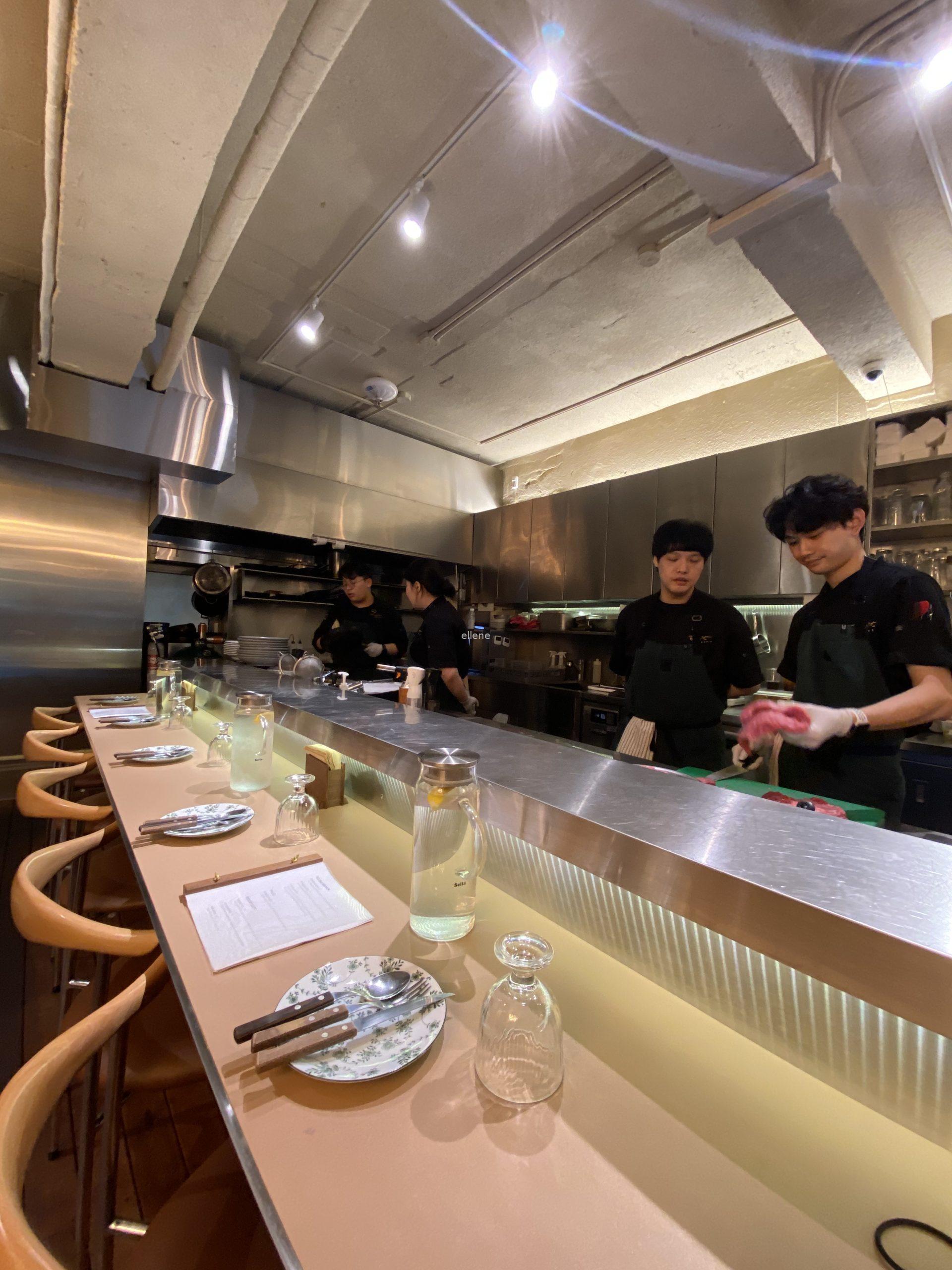 아무래도 마주보고 얘기하려면 테이블 좌석이 편하겠지만, 우리는 예약하지 않고 방문해서 바 테이블로 안내받았다.