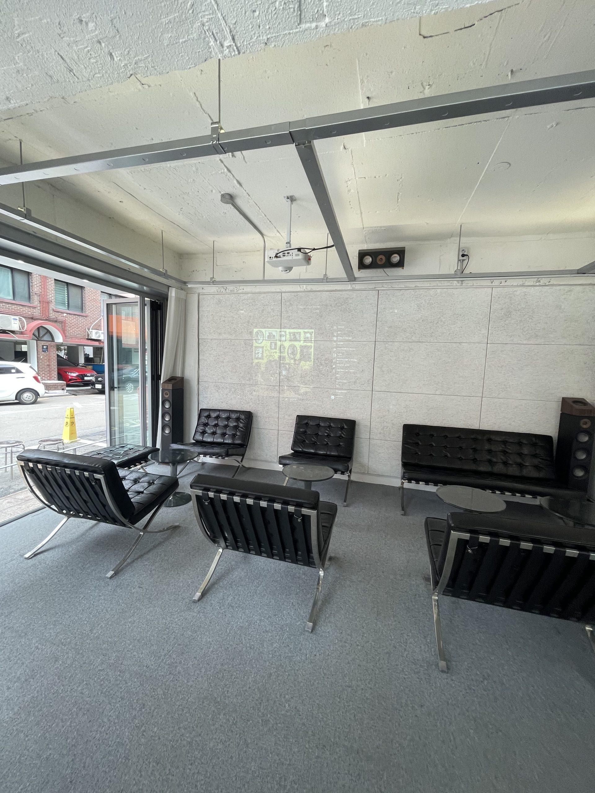 좌석은 넓직한 1인용, 4인용 쇼파들을 마주보게 배치해두었다. 정말 잠깐 머물면서 일 얘기도 하고 일상 얘기도 하기에는 더없이 좋은 구조다.